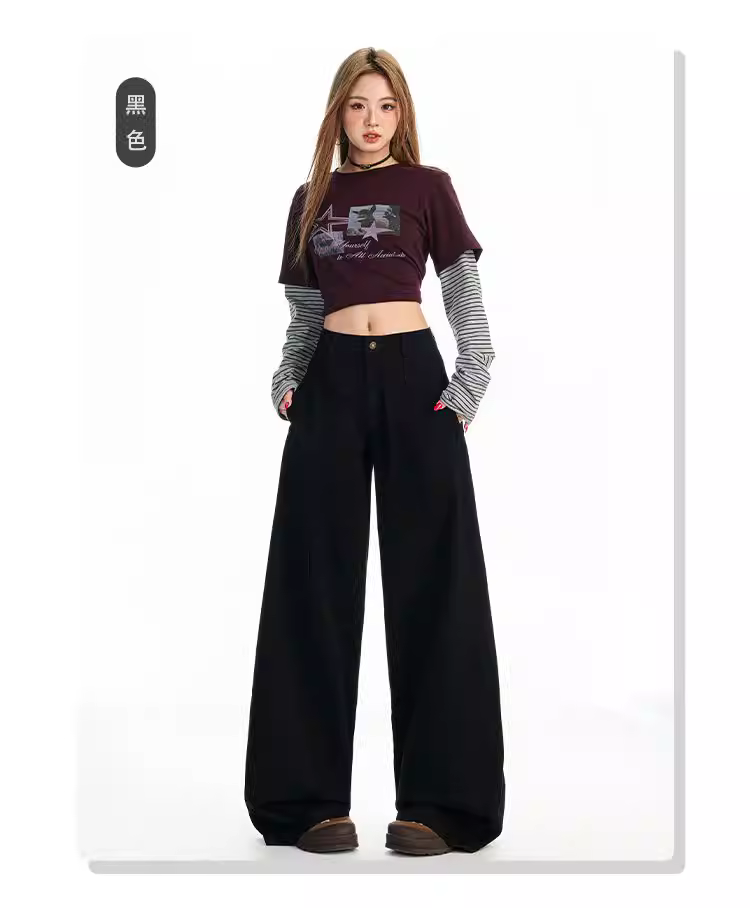 - Quần jeans ống rộng dày dặn lót lông màu cà phê La Chapelle dành cho nữ, mẫu mới thu đông 2025, cạp cao, dáng thẳng, tôn dáng