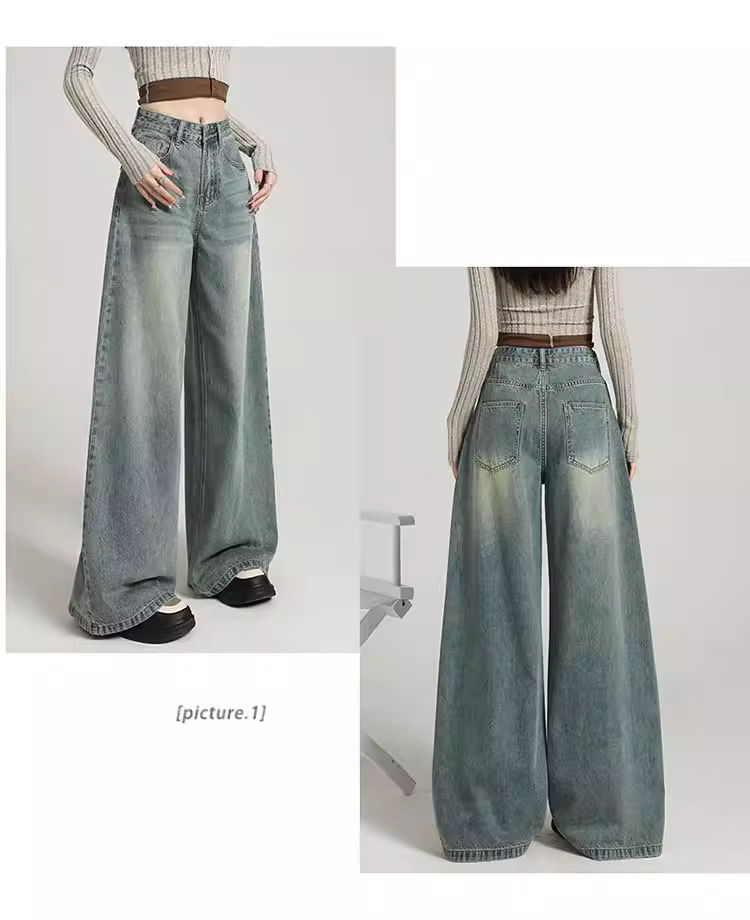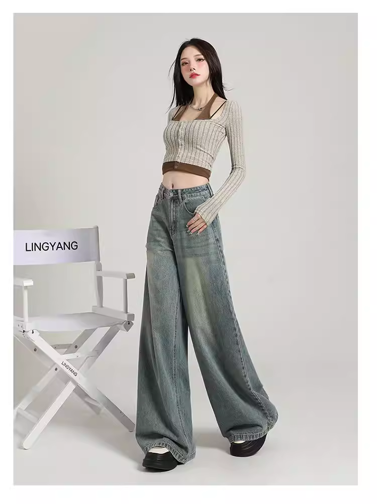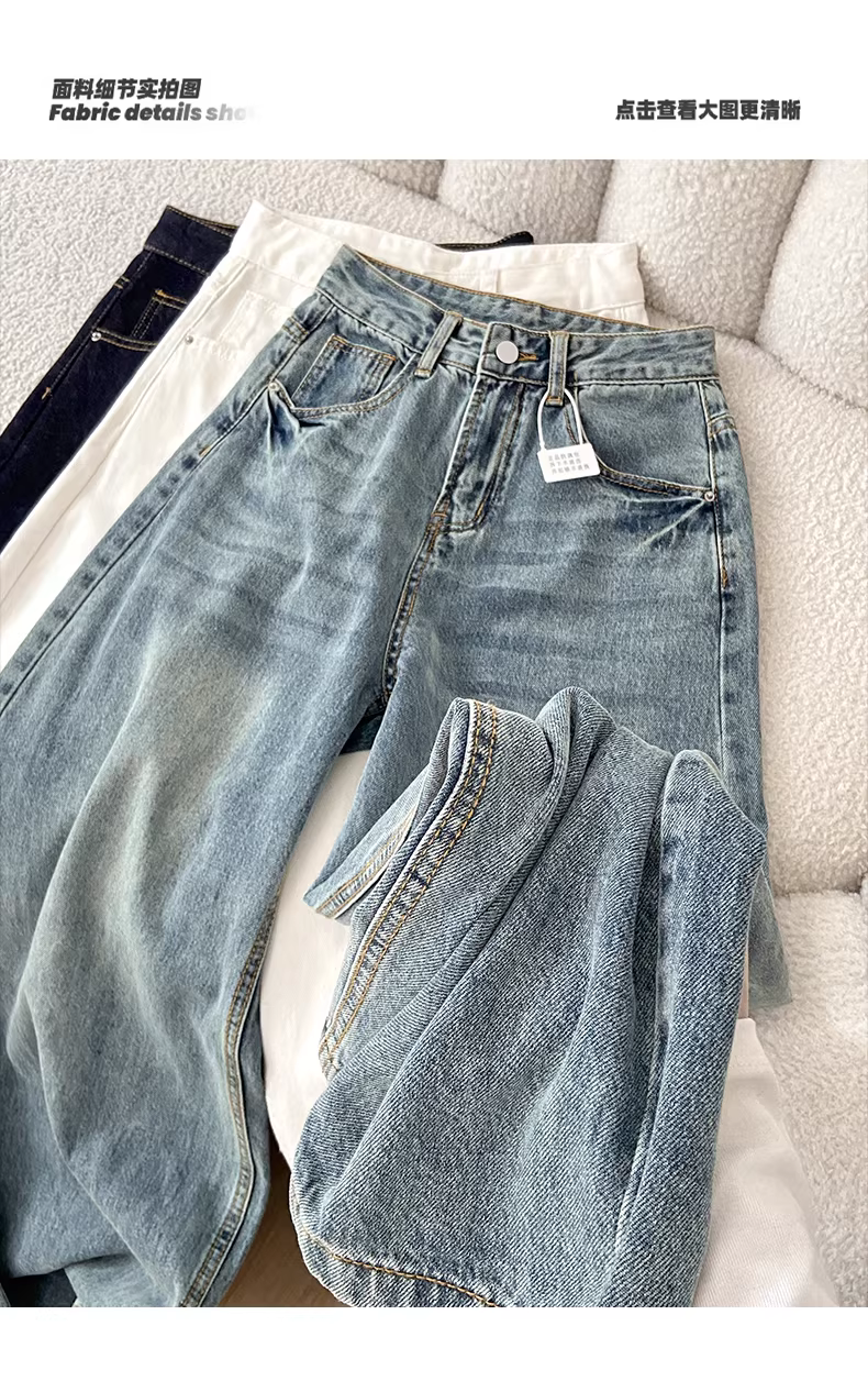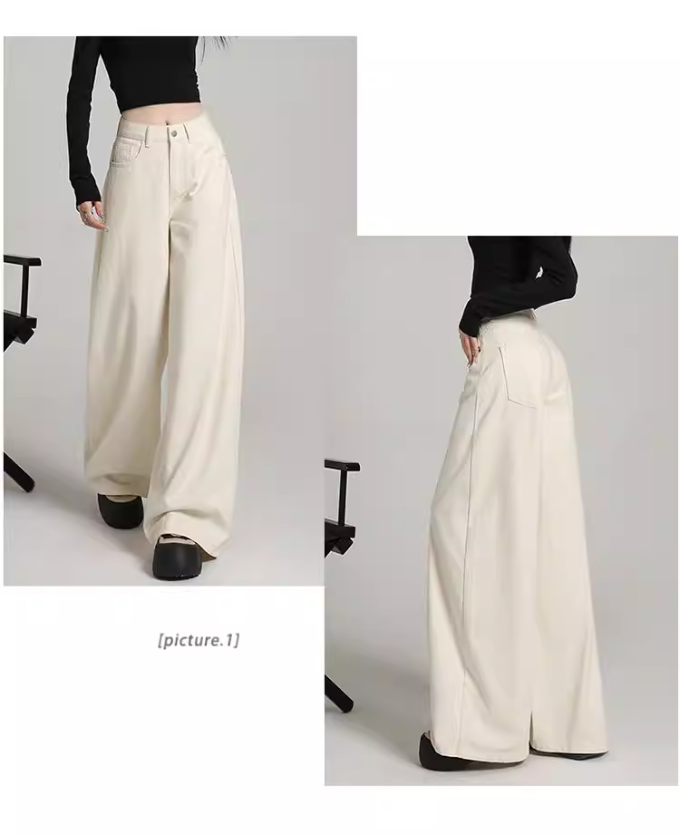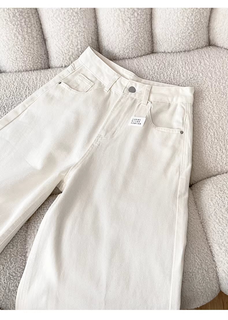 - Quần jeans ống rộng dày dặn lót lông màu sáng La Chapelle dành cho nữ, mẫu mới thu đông 2025, cạp cao, dáng thẳng, tôn dáng