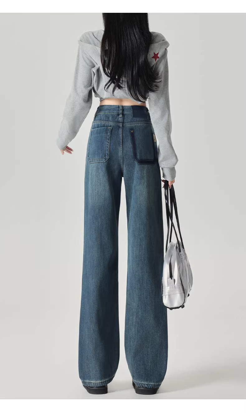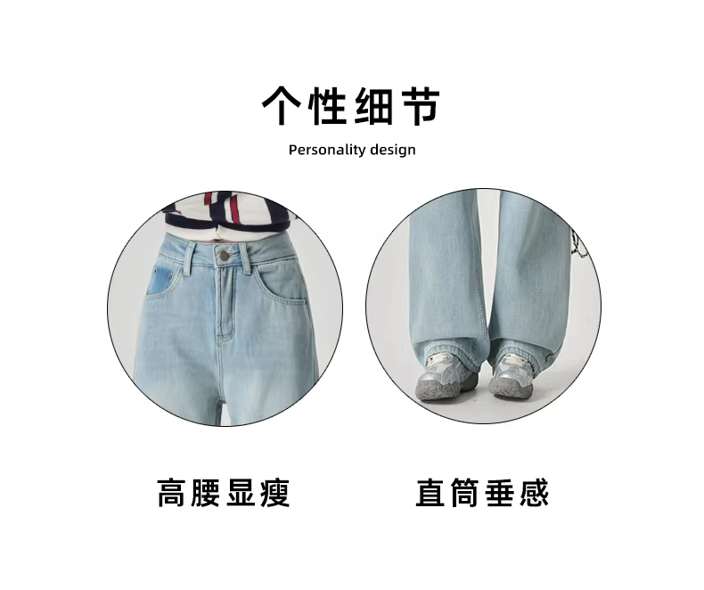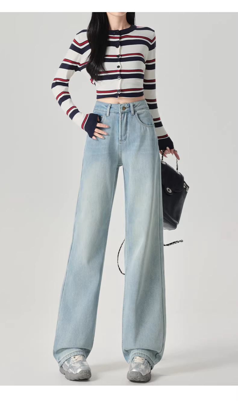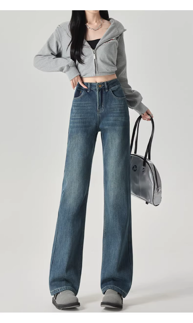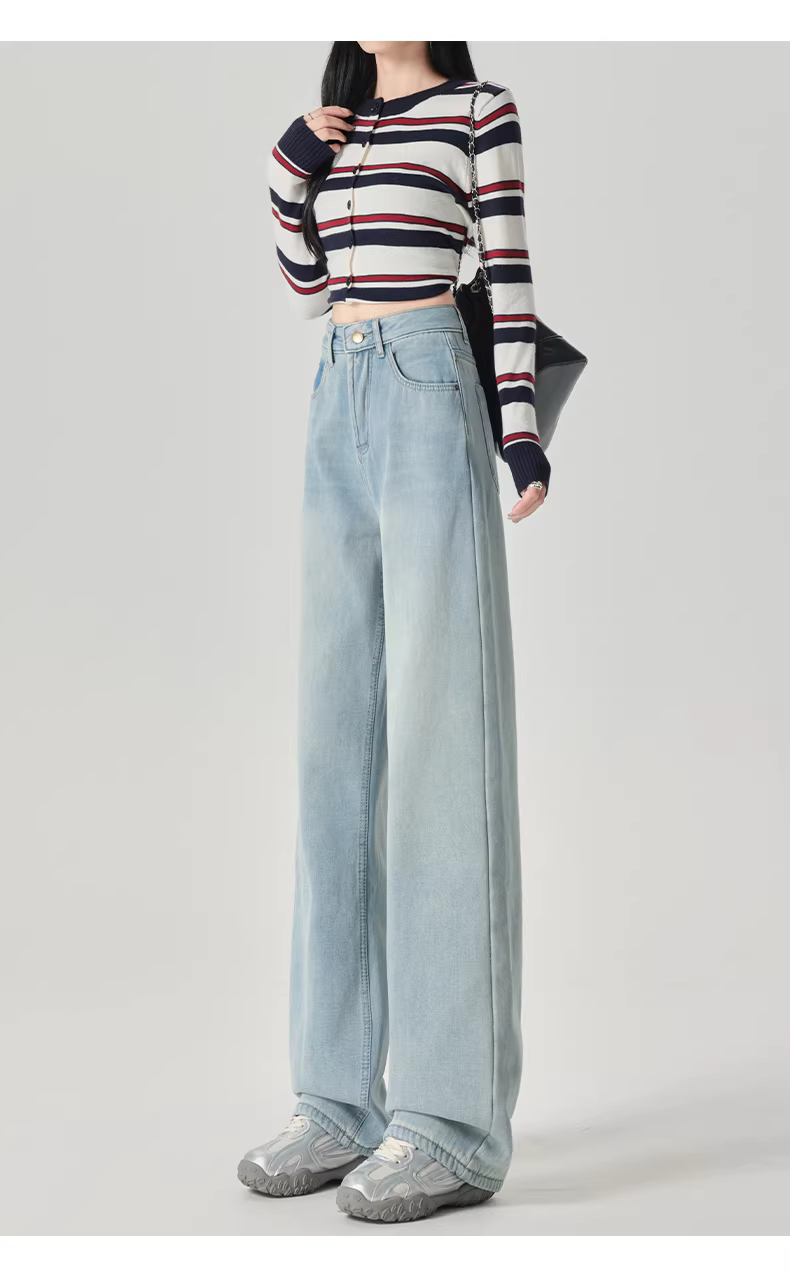 - Quần jeans ống rộng dày dặn lót lông màu sáng La Chapelle dành cho nữ, mùa thu đông 2025, kiểu dáng mới, cạp cao, ôm dáng, thẳng.