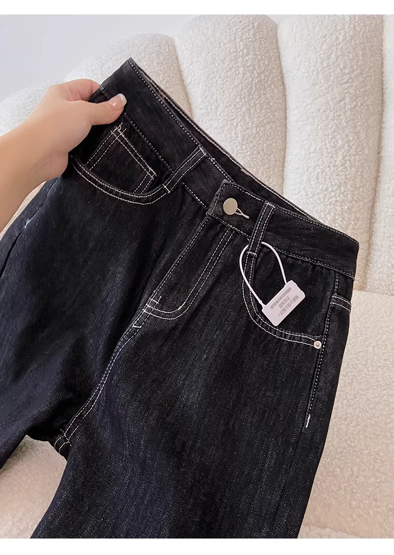 - Quần jeans ống rộng dày lót lông cừu đen La Chapelle dành cho nữ, kiểu dáng Mỹ, cạp cao, thẳng, mới thu đông 2025