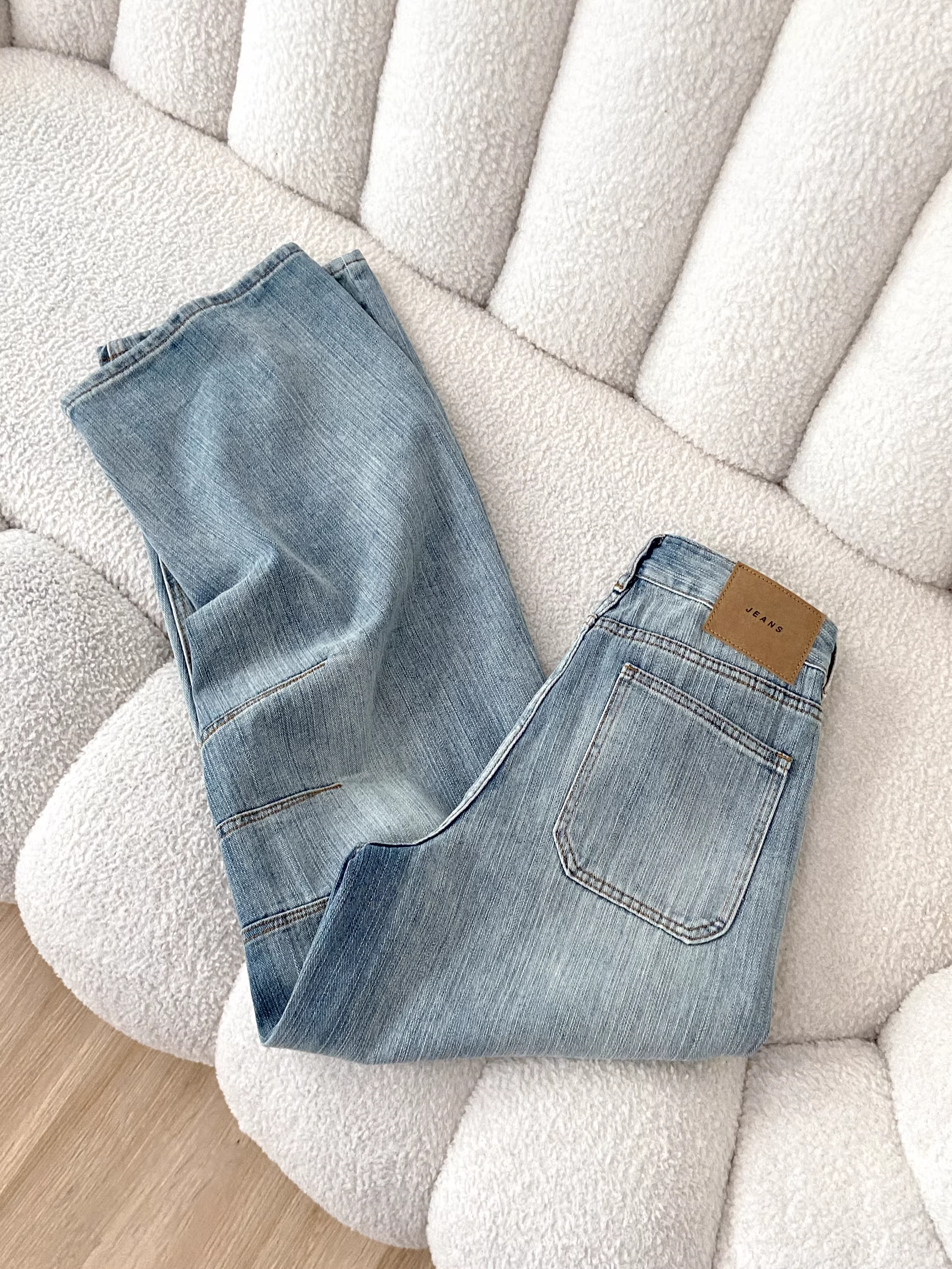 Quần jeans ống rộng họa tiết tre màu sáng La Chapelle dành cho nữ, mẫu mới thu đông 2025, cạp cao, dáng thẳng, size nhỏ nhắn