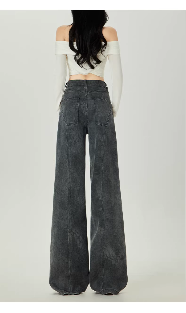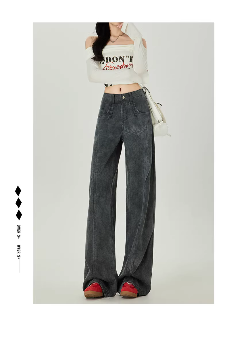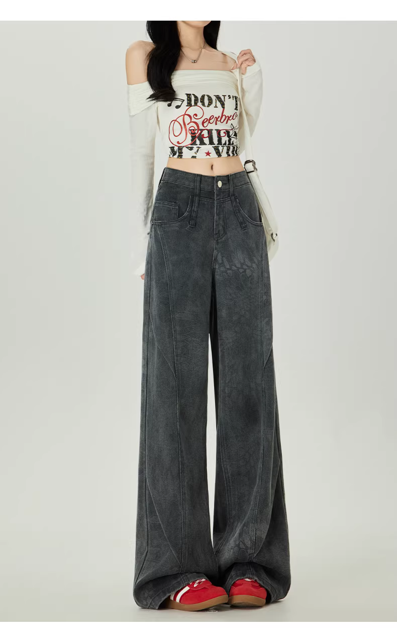 - Quần jeans ống rộng in họa tiết La Chapelle dành cho nữ, mẫu mới thu đông 2025, cạp cao, dáng thẳng, dài chấm đất, size nhỏ nhắn
