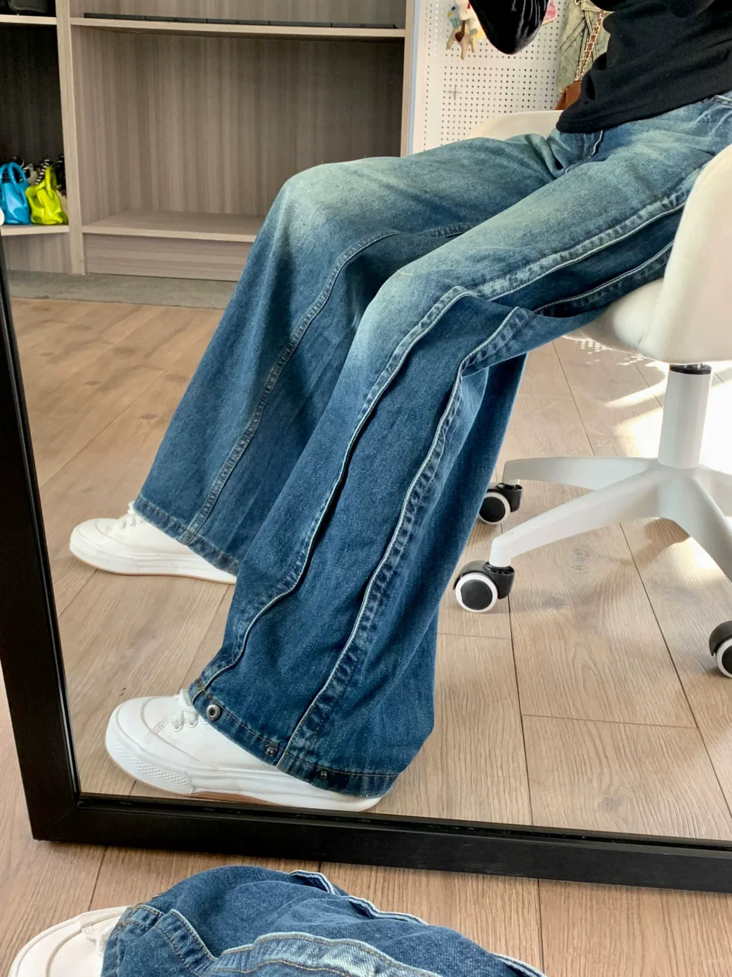 - Quần jeans ống rộng kiểu Mỹ cổ điển dành cho nữ, thu đông 2025, size lớn, cạp cao, dáng rộng, tôn dáng, dài chấm đất