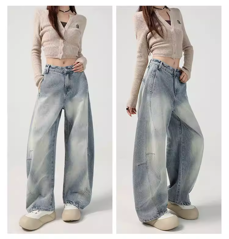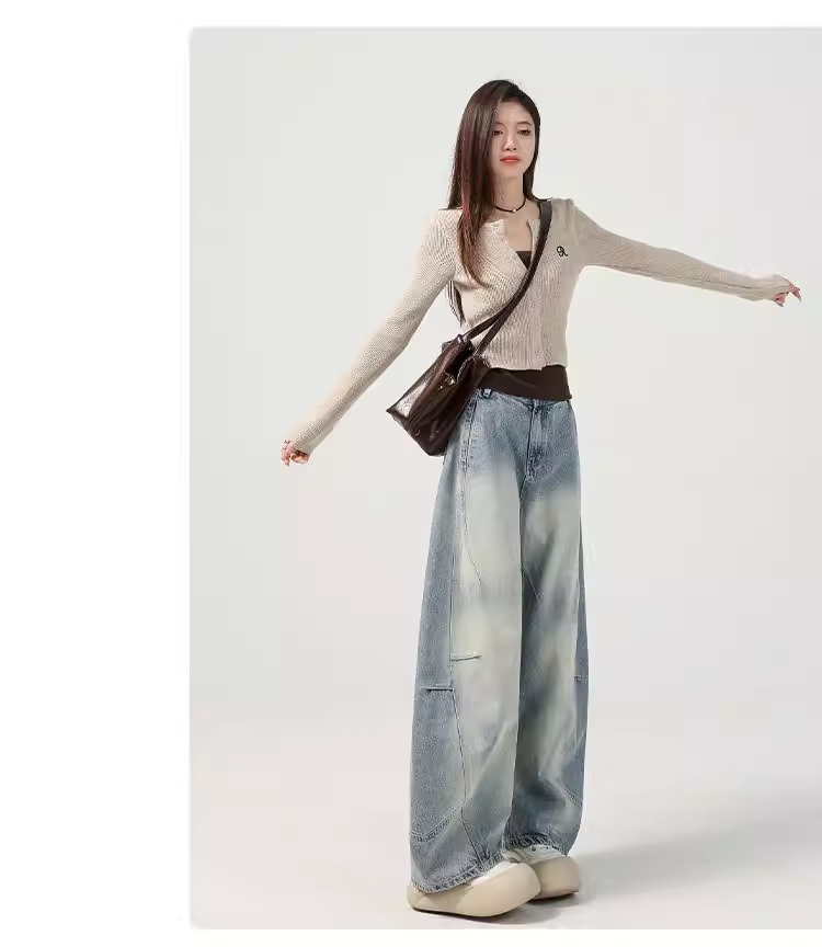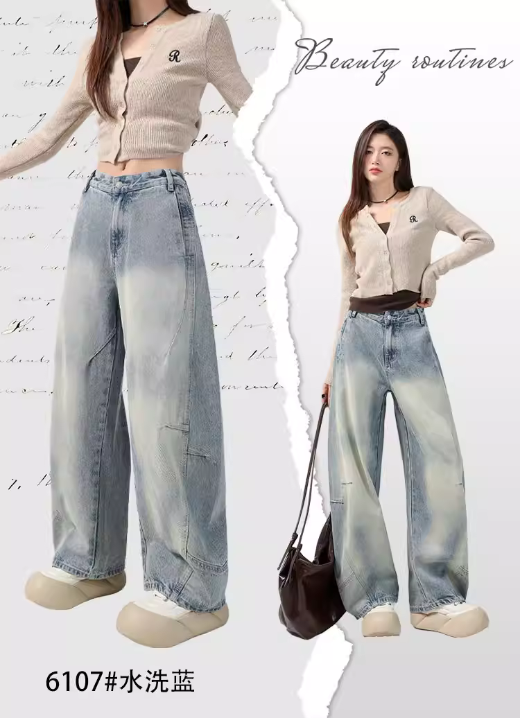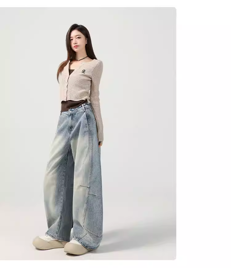 Quần jeans ống rộng La Chapelle dành cho nữ, mẫu mới hè 2025, cạp cao, dáng suôn dài chấm đất, kiểu quần ống đứng dáng kiếm.
