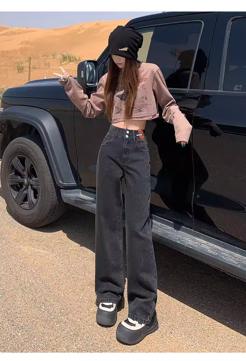 Quần jeans ống rộng La Chapelle dành cho nữ, thu đông 2025, kiểu dáng mới, cạp cao, chất liệu lông cừu, dáng thẳng, size nhỏ nhắn