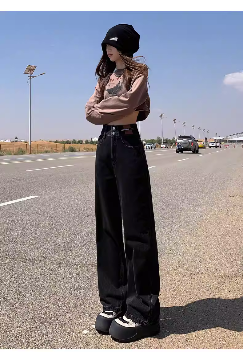 - Quần jeans ống rộng La Chapelle dành cho nữ, thu đông 2025, kiểu dáng mới, cạp cao, chất liệu lông cừu, dáng thẳng, size nhỏ nhắn