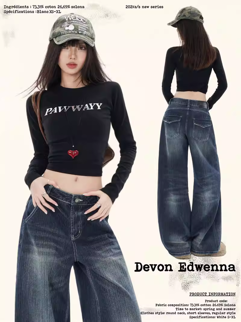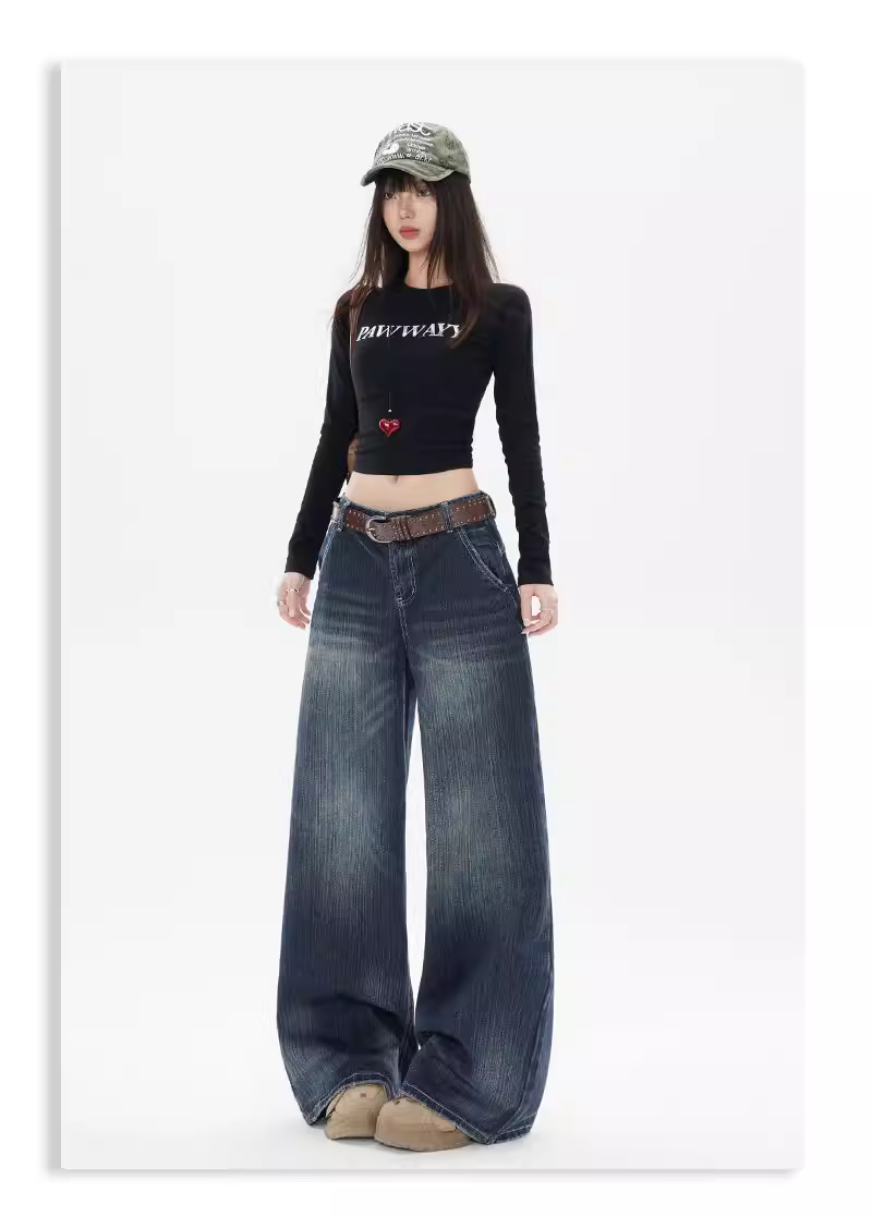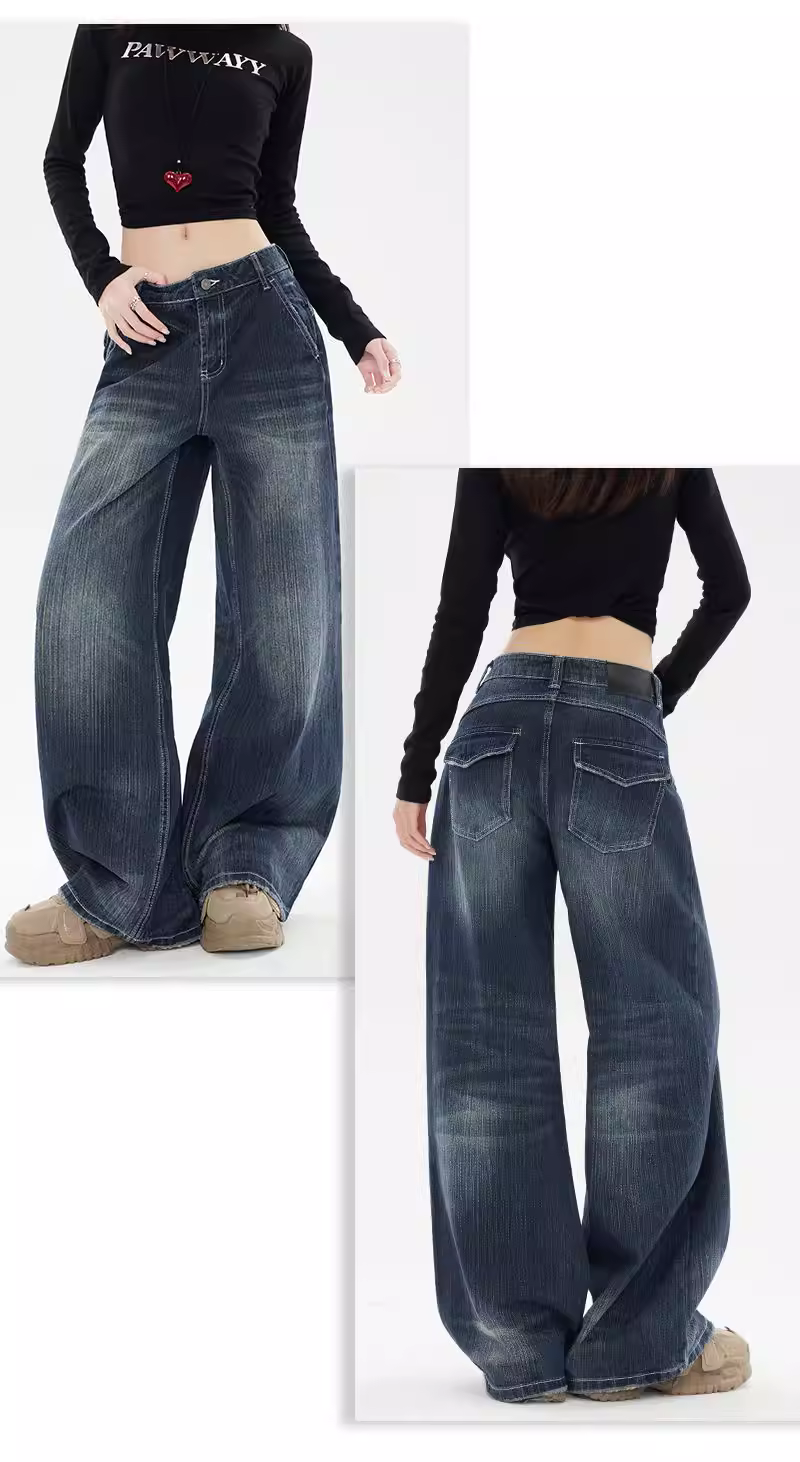 Quần jeans ống rộng La Chapelle kiểu retro dành cho nữ, mẫu mới thu đông 2025, dáng dài, rộng rãi, chất liệu mềm mại, kiểu dáng thẳng.