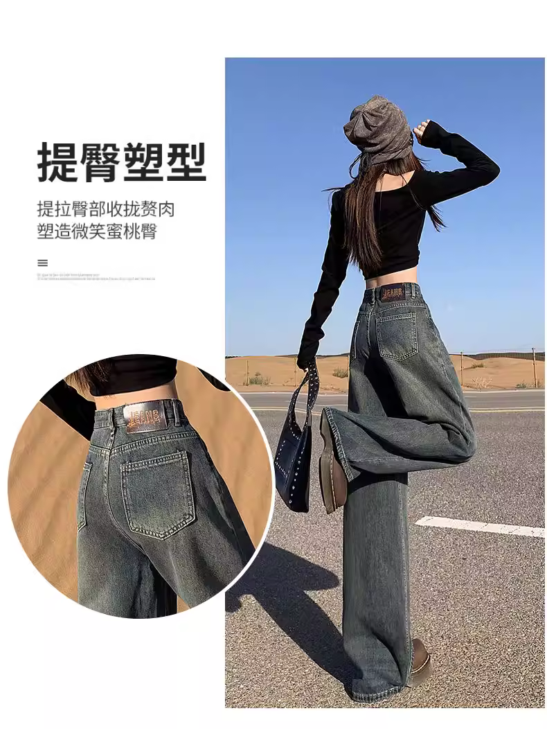 Quần jeans ống rộng La Chapelle kiểu retro dành cho nữ, thu đông 2025, cạp cao, dáng suông, size nhỏ