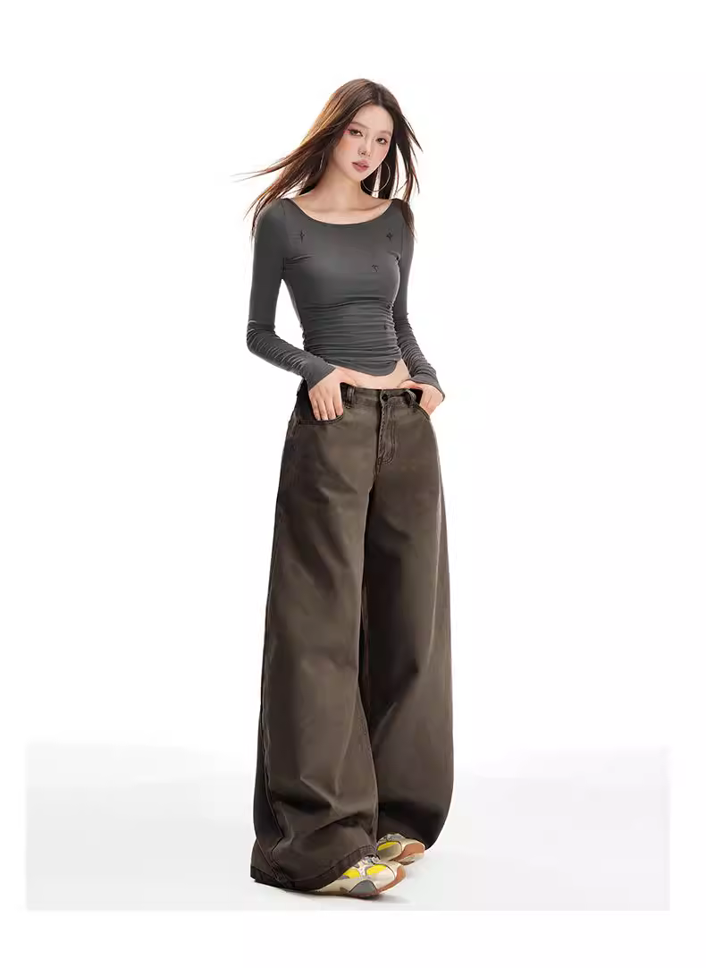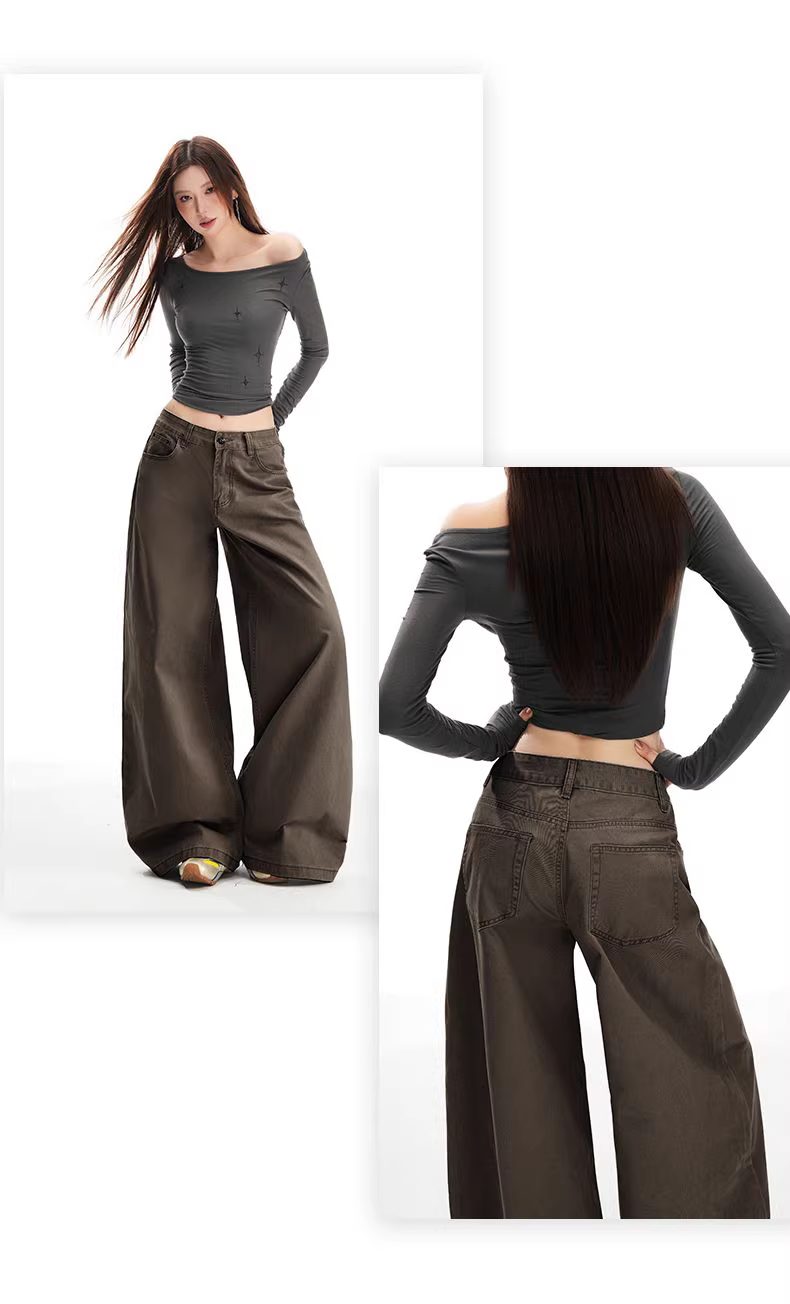 - Quần jeans ống rộng lót lông cừu dày dặn La Chapelle dành cho nữ, mẫu mới thu đông 2025, cạp cao, dáng thẳng, chất liệu mềm mại