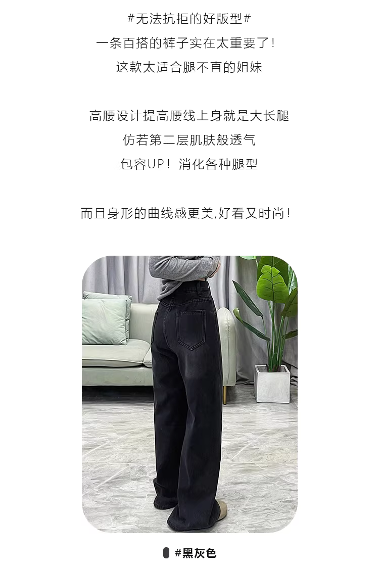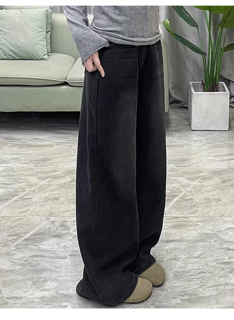 - Quần jeans ống rộng lót lông cừu đen La Chapelle dành cho nữ, mẫu mới thu đông 2025, cạp cao, dài chấm đất, dáng thẳng
