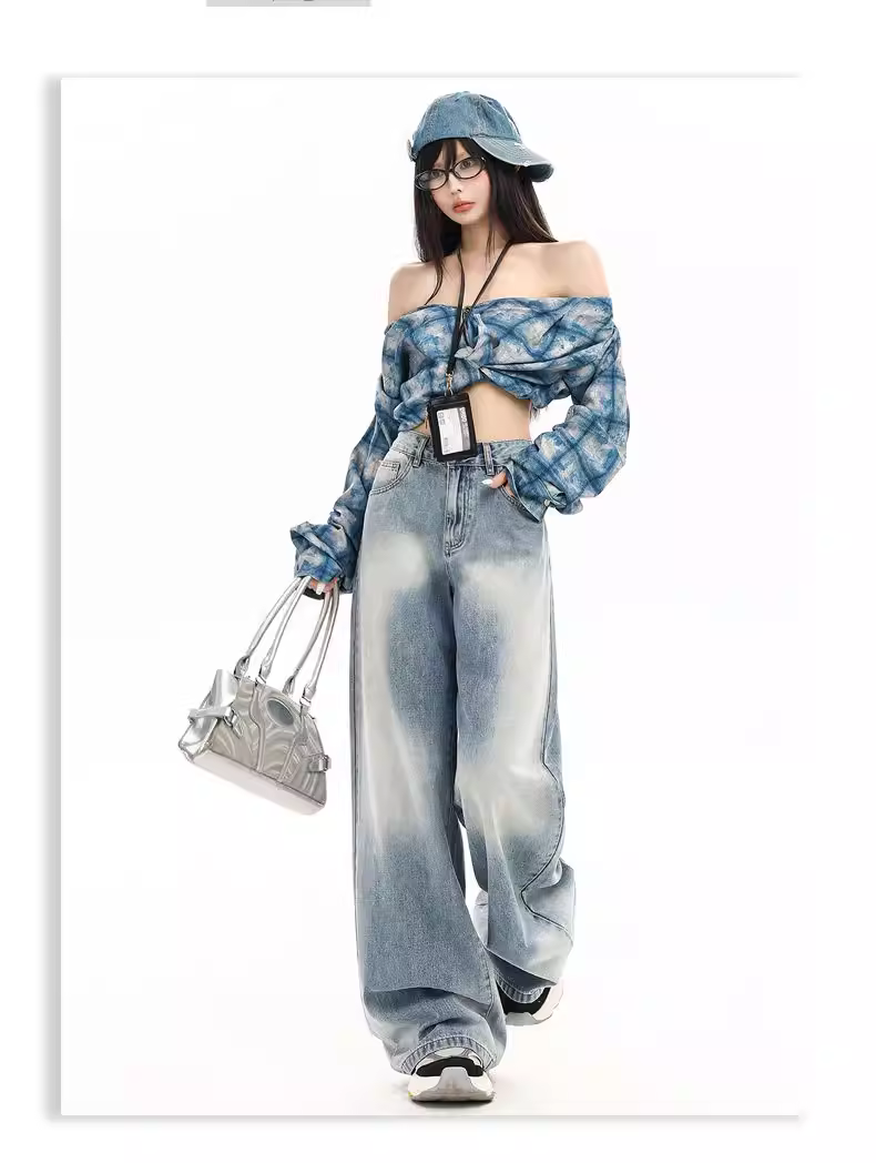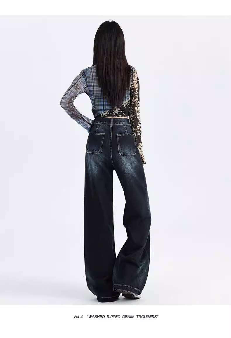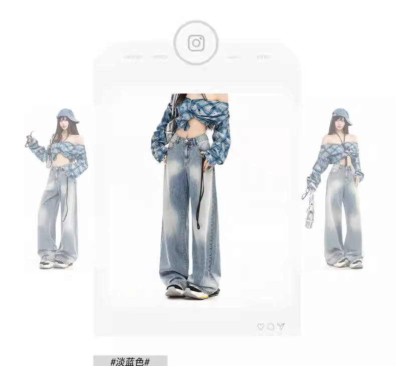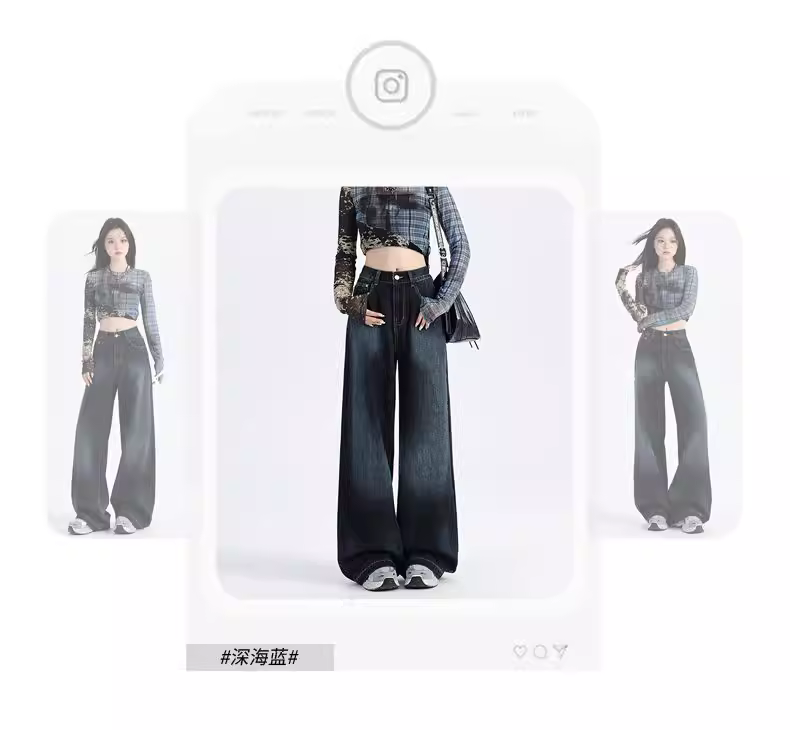 - Quần jeans ống rộng lót lông cừu La Chapelle dành cho nữ, mẫu mới thu đông 2025, cạp cao, dáng suông, chất liệu mềm mại