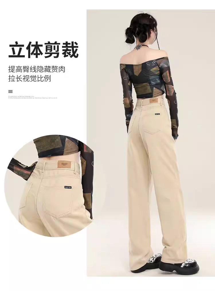 - Quần jeans ống rộng lót lông cừu La Chapelle dành cho nữ, mùa thu đông 2025, kiểu dáng mới, cạp cao, dáng rộng, thẳng.