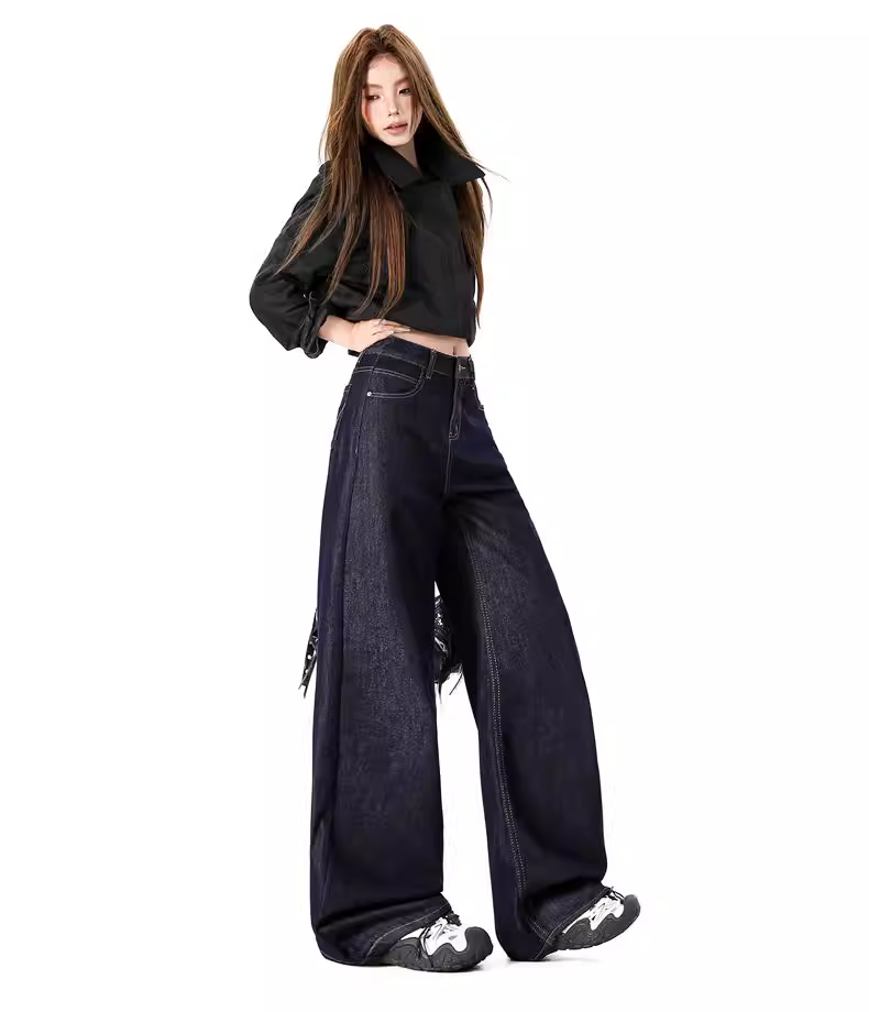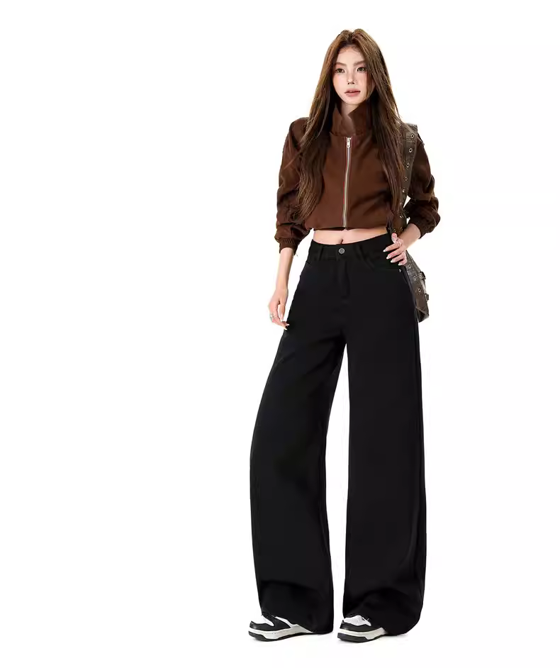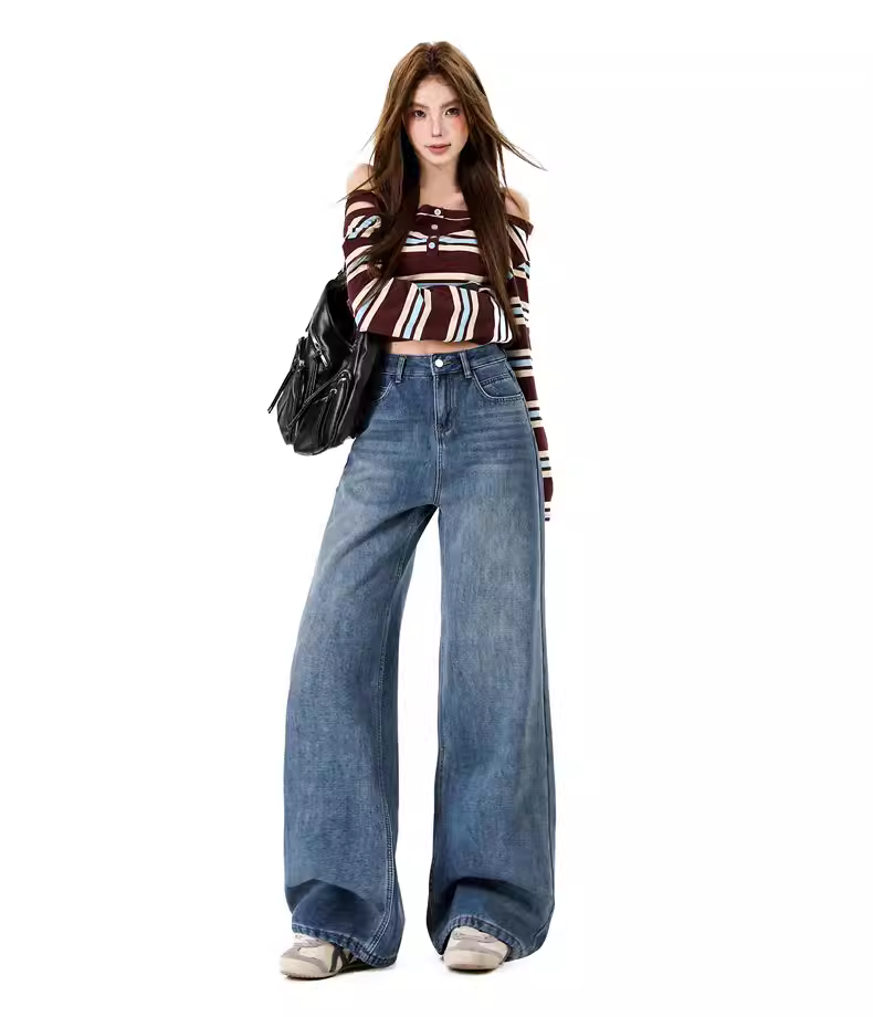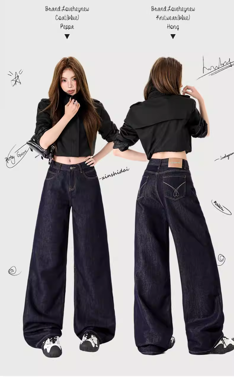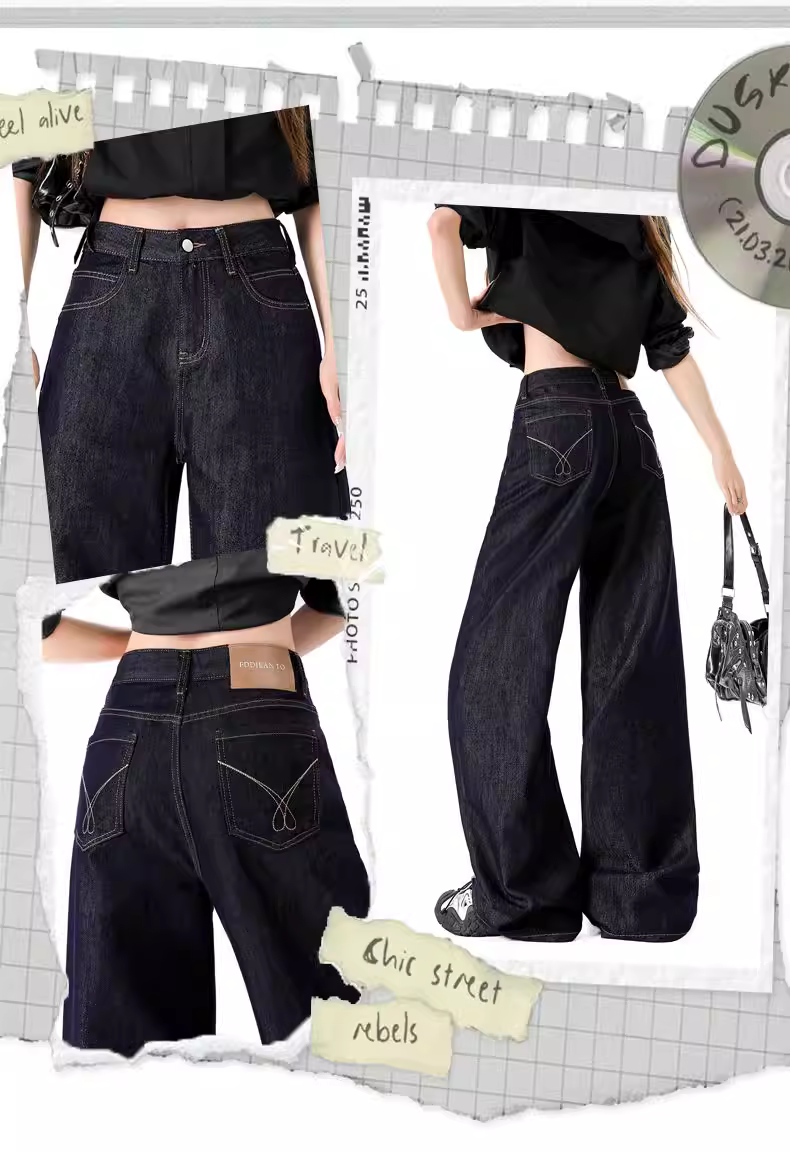 - Quần jeans ống rộng lót lông dày kiểu La Chapelle dành cho nữ, mẫu mới thu đông 2025, cạp cao, dáng rộng, thẳng
