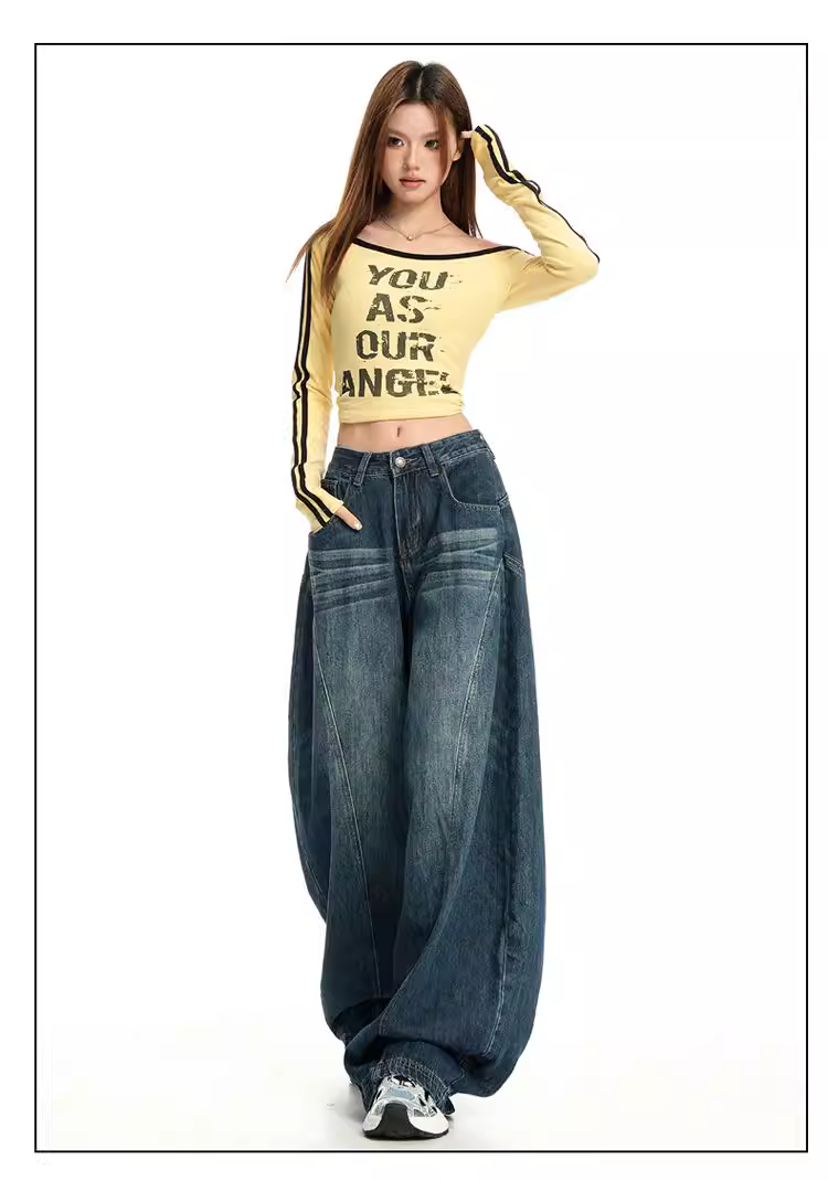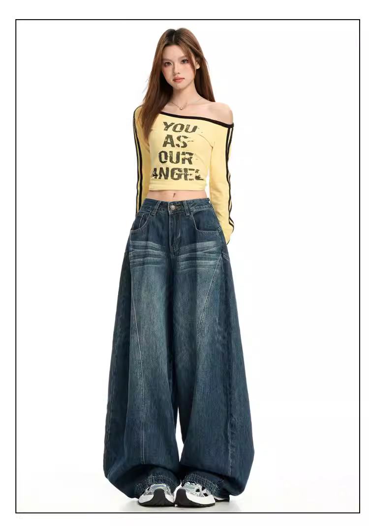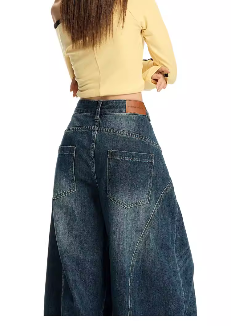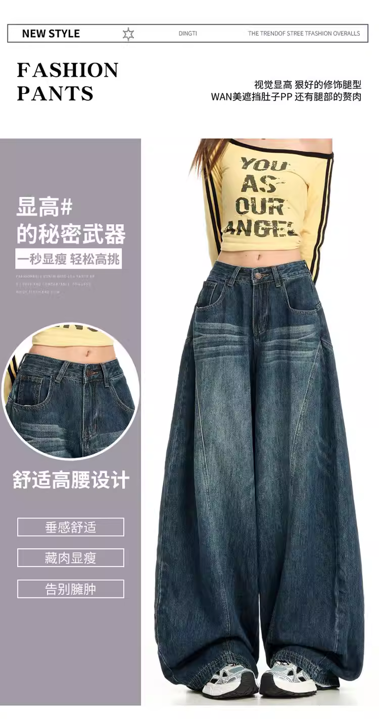 - Quần jeans ống rộng lót lông dày La Chapelle dành cho nữ, mẫu mới thu đông 2025, cạp cao, dáng rộng, thẳng
