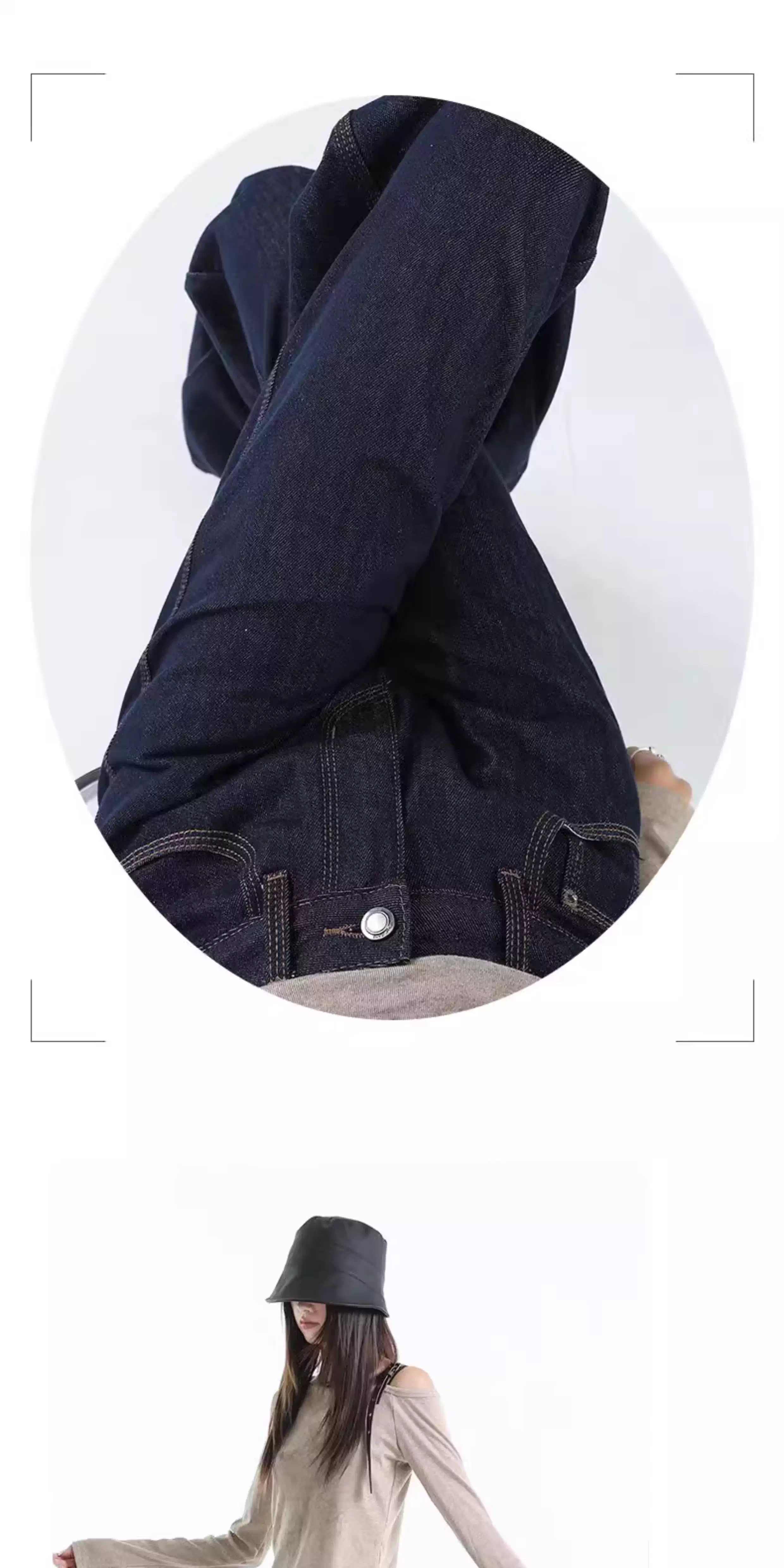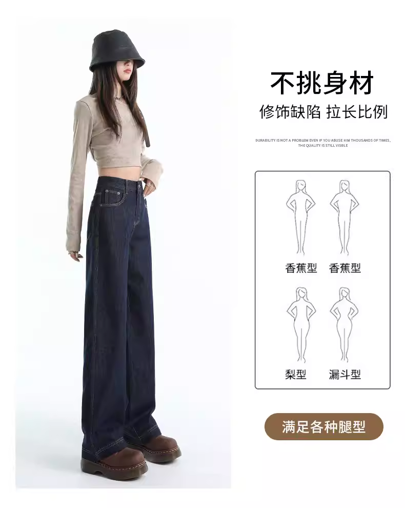 - Quần jeans ống rộng lót lông màu xanh đậm La Chapelle dành cho nữ, mùa thu đông 2025, kiểu dáng mới, cạp cao, dáng thẳng, size nhỏ