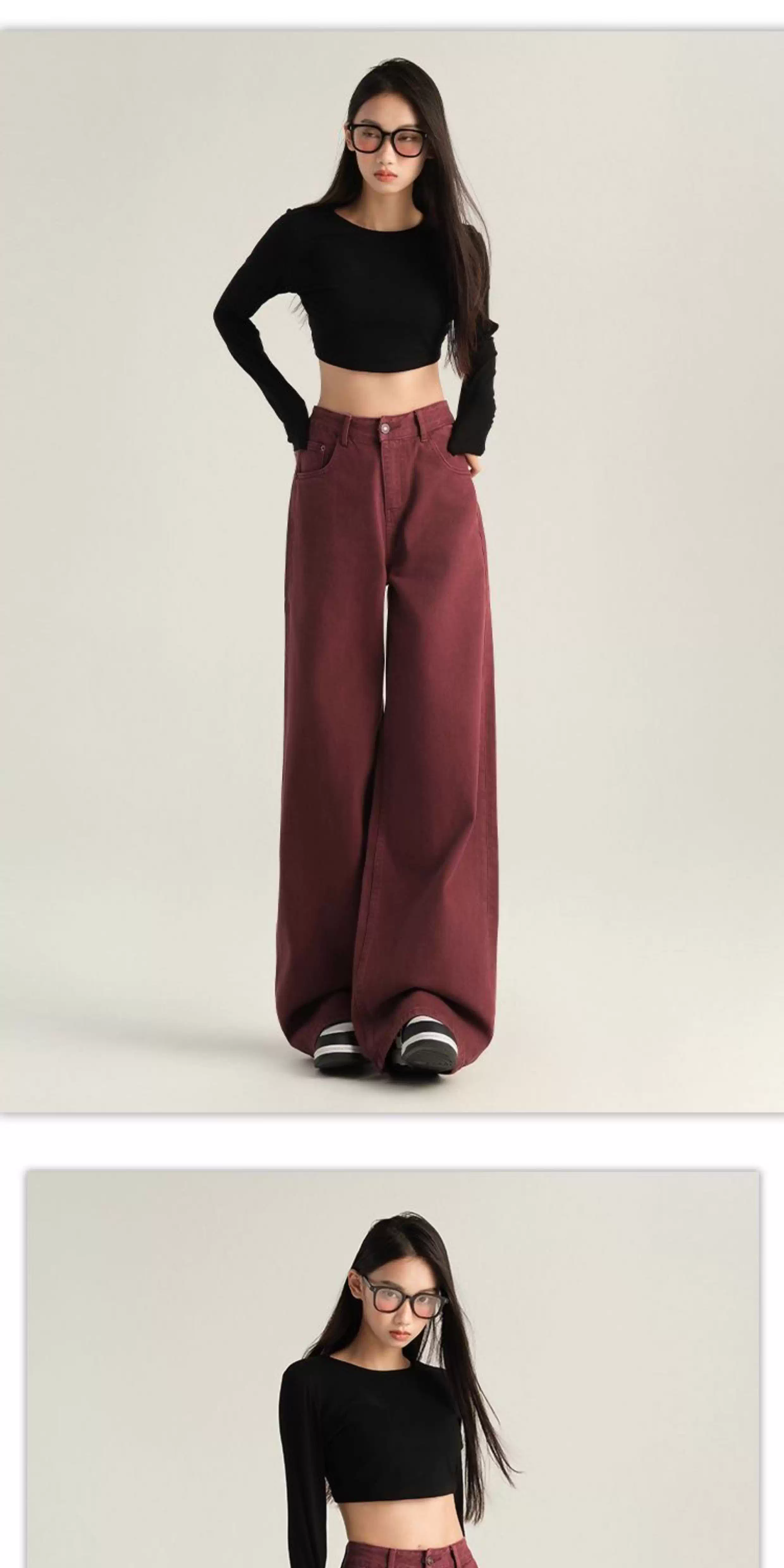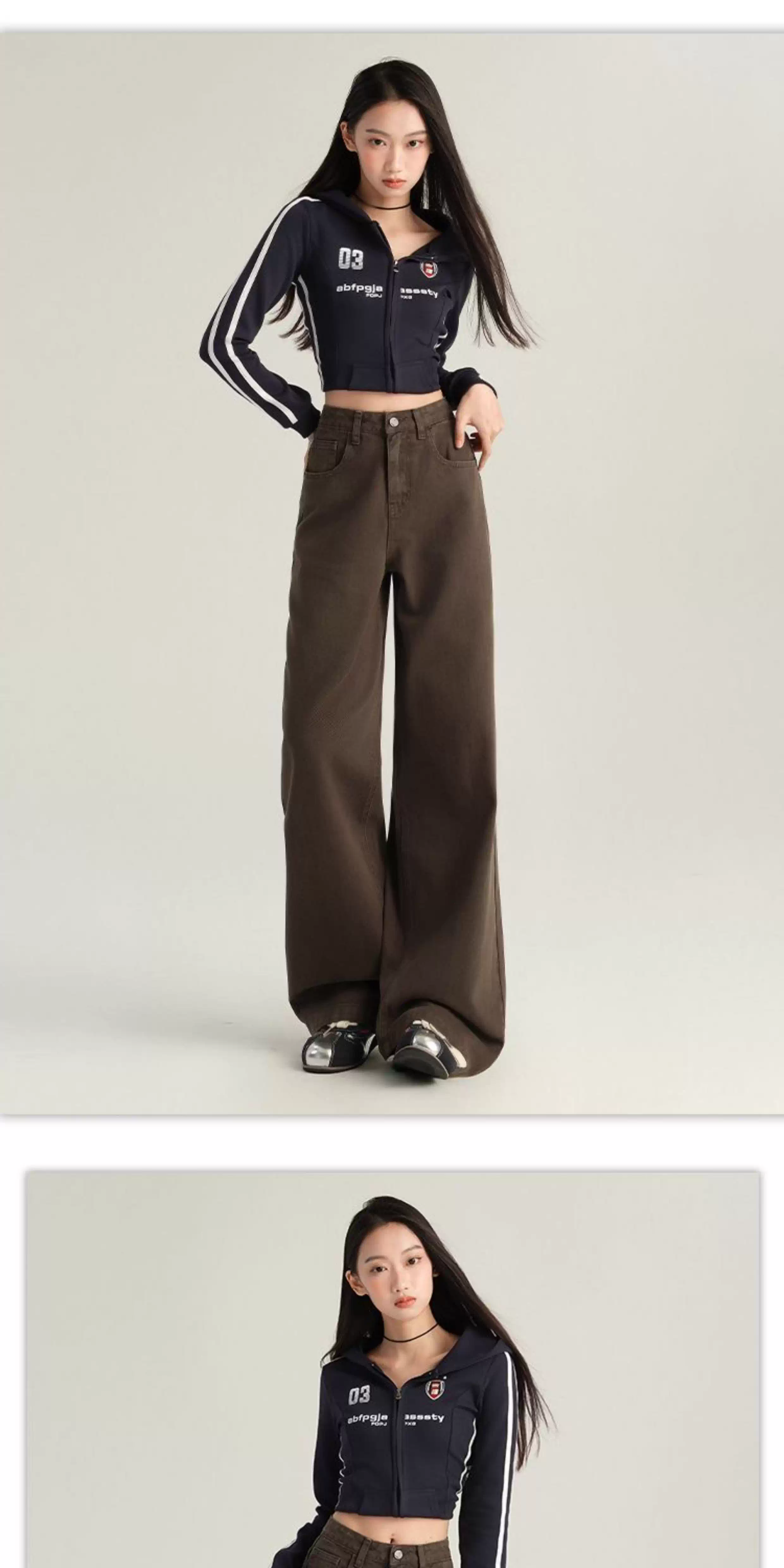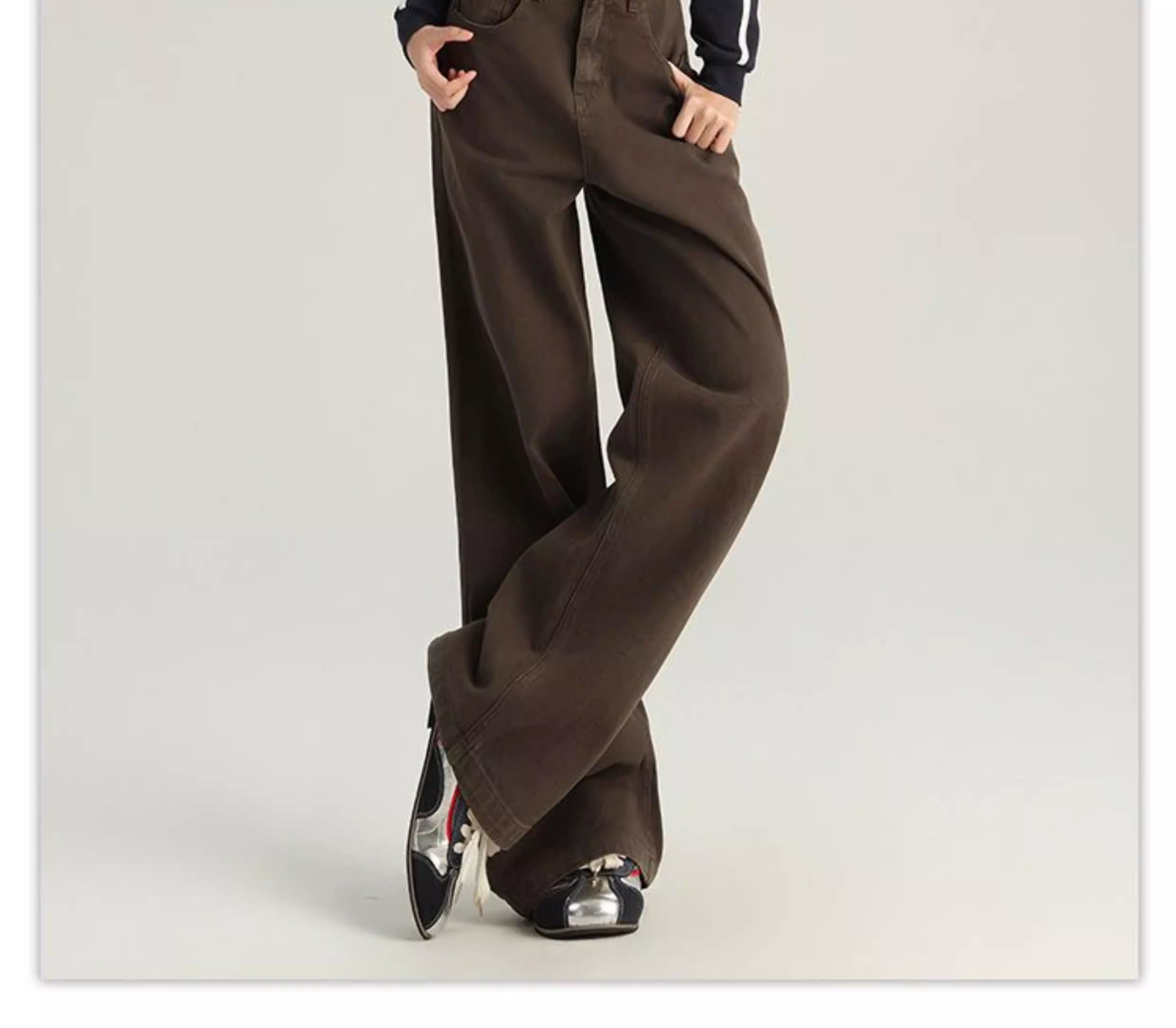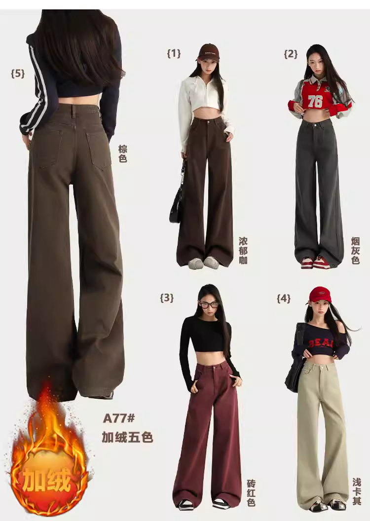 - Quần jeans ống rộng màu cà phê La Chapelle dành cho nữ, mẫu mới thu đông 2025, kiểu vintage, cạp cao, dáng rộng, dài chấm đất, thẳng.
