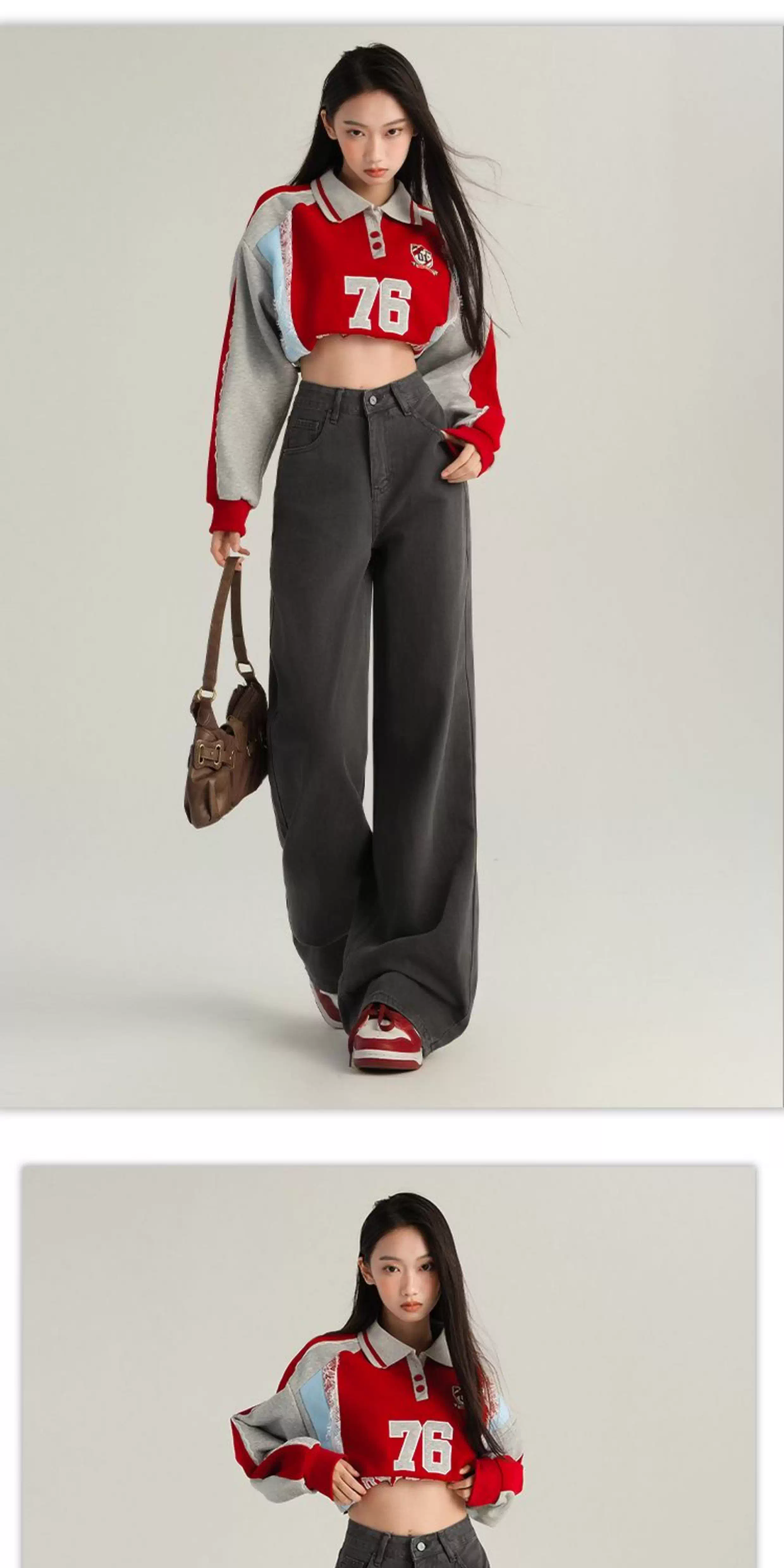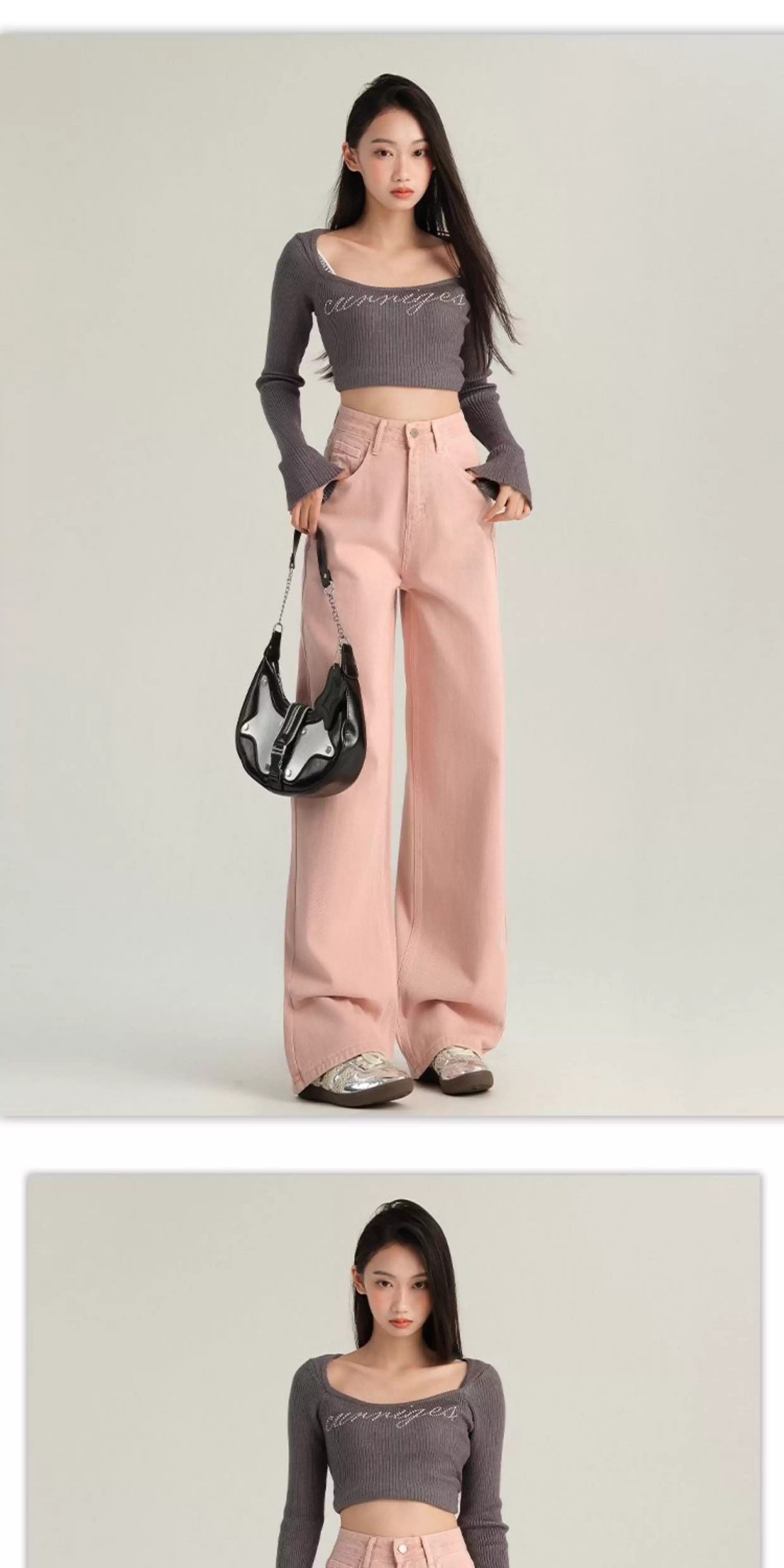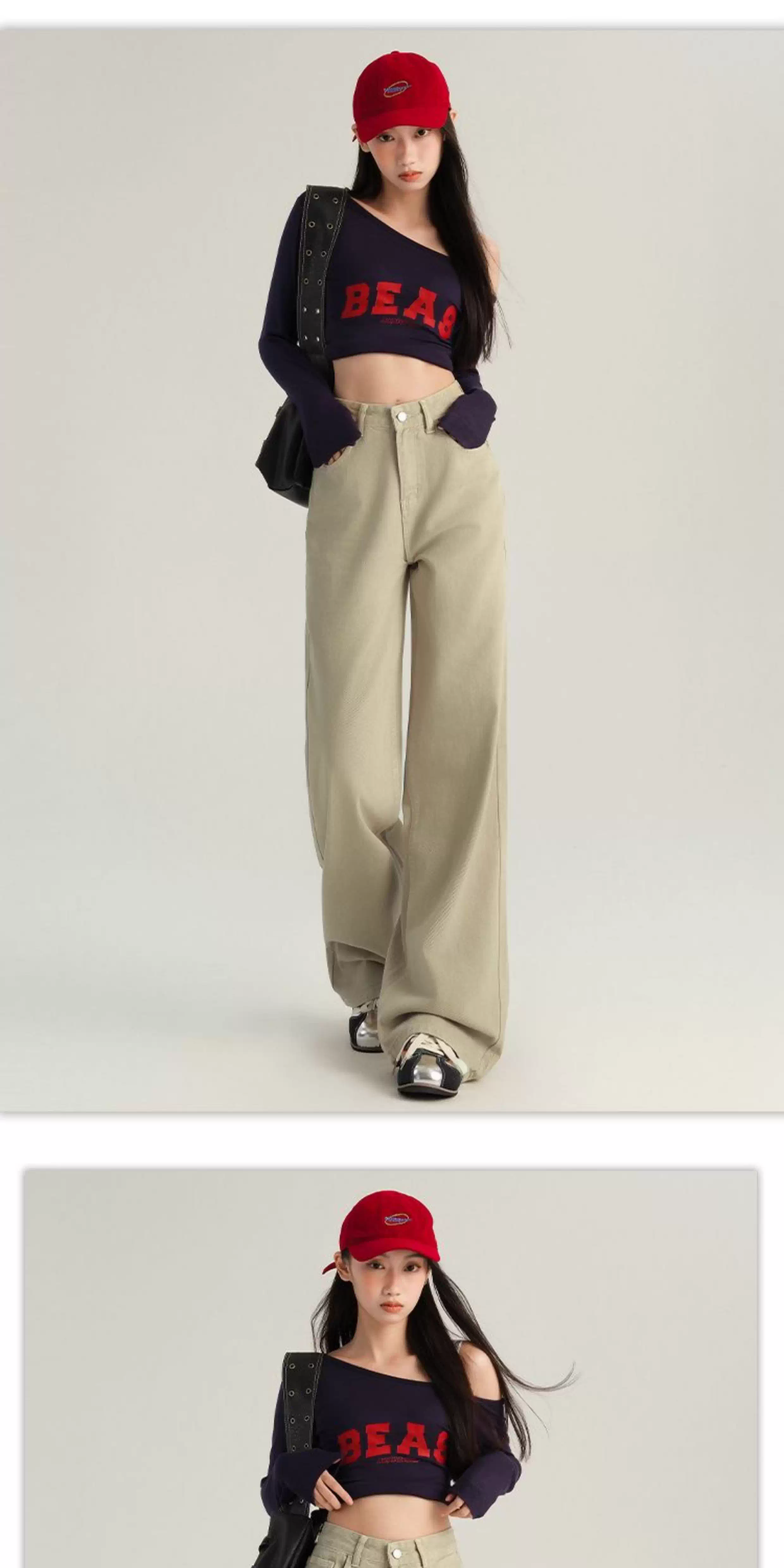 - Quần jeans ống rộng màu cà phê La Chapelle dành cho nữ, mẫu mới thu đông 2025, kiểu vintage, cạp cao, dáng rộng, dài chấm đất, thẳng.