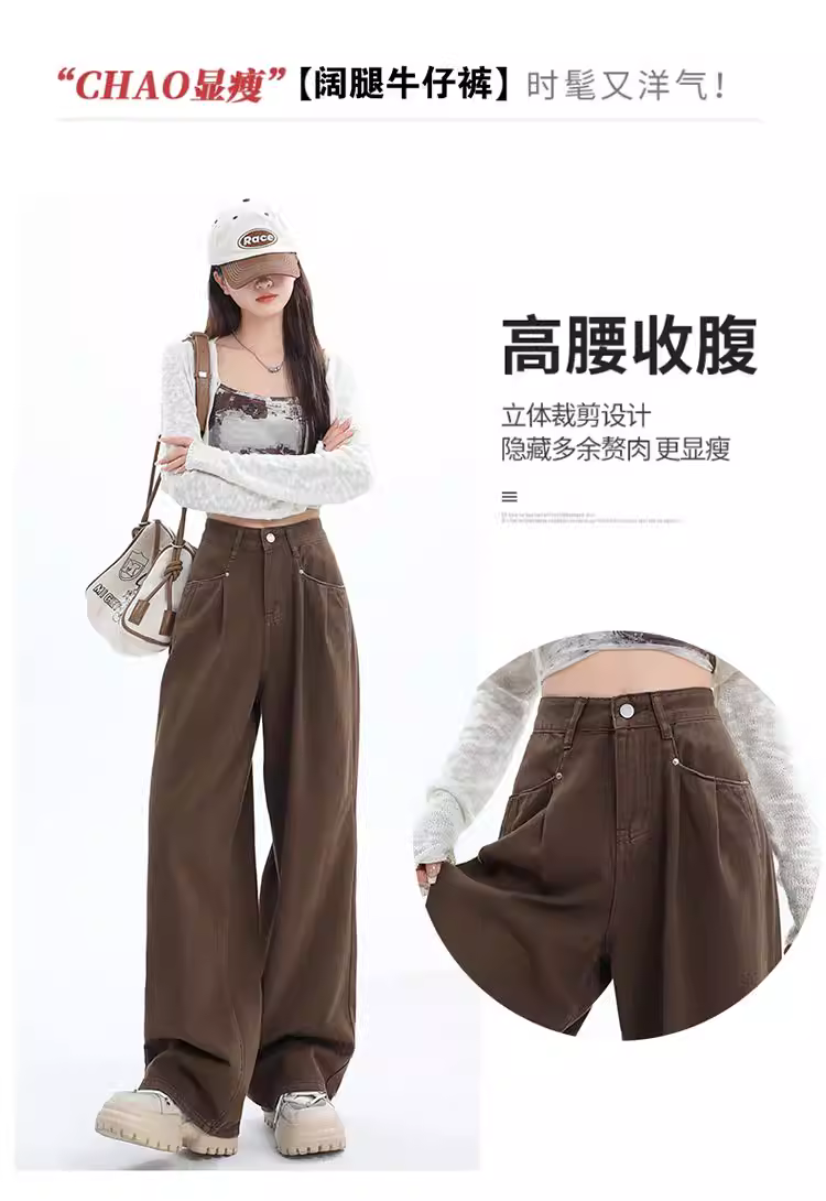 - Quần jeans ống rộng màu cà phê La Chapelle Melard dành cho nữ, mẫu mới thu đông 2025, chất liệu dày dặn, lót lông mềm mại, dáng thẳng.