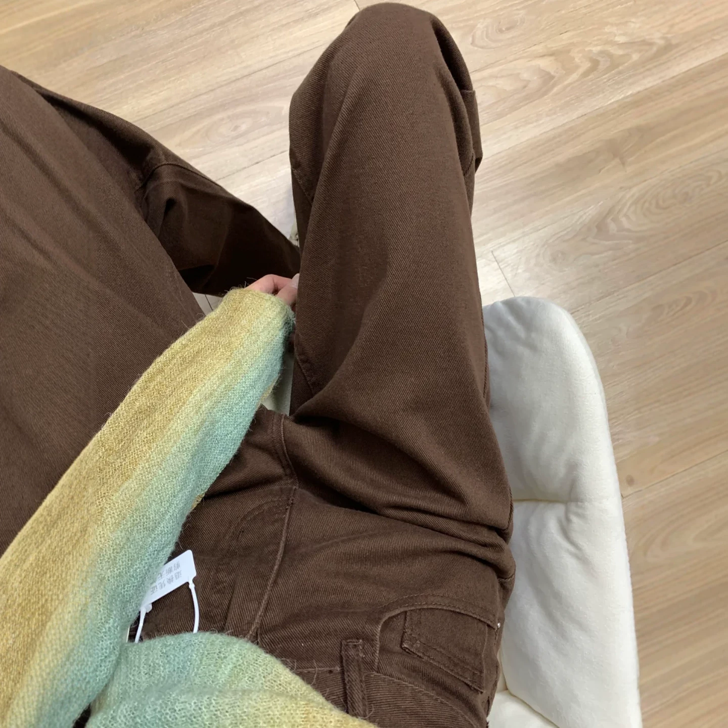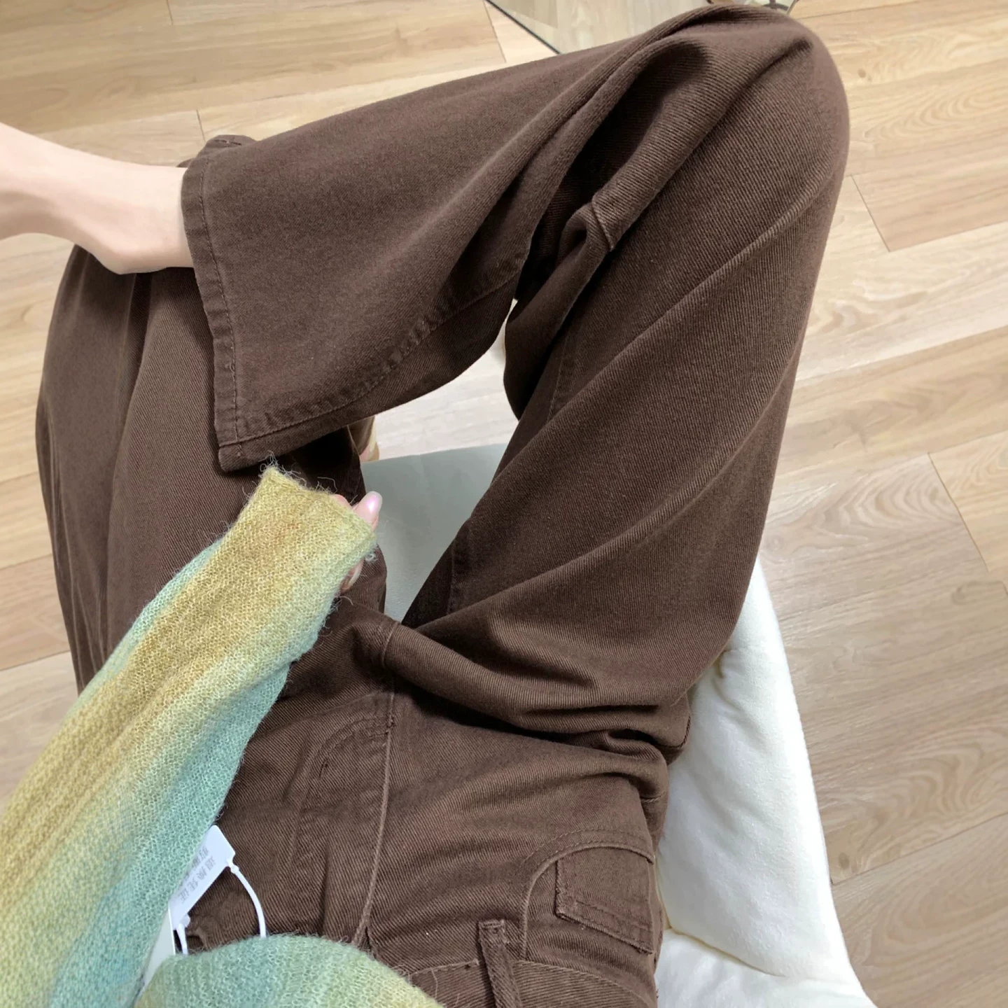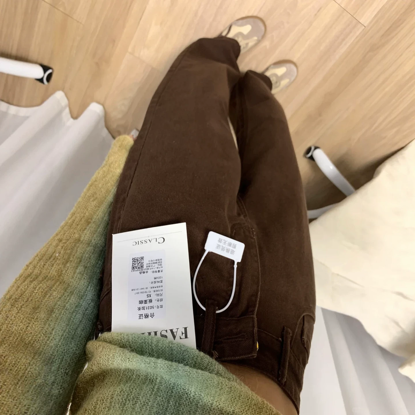 - Quần jeans ống rộng màu nâu dành cho nữ có dáng quả lê, thu đông 2025, size lớn, cạp cao, dáng rộng, tôn dáng, quần ống thẳng