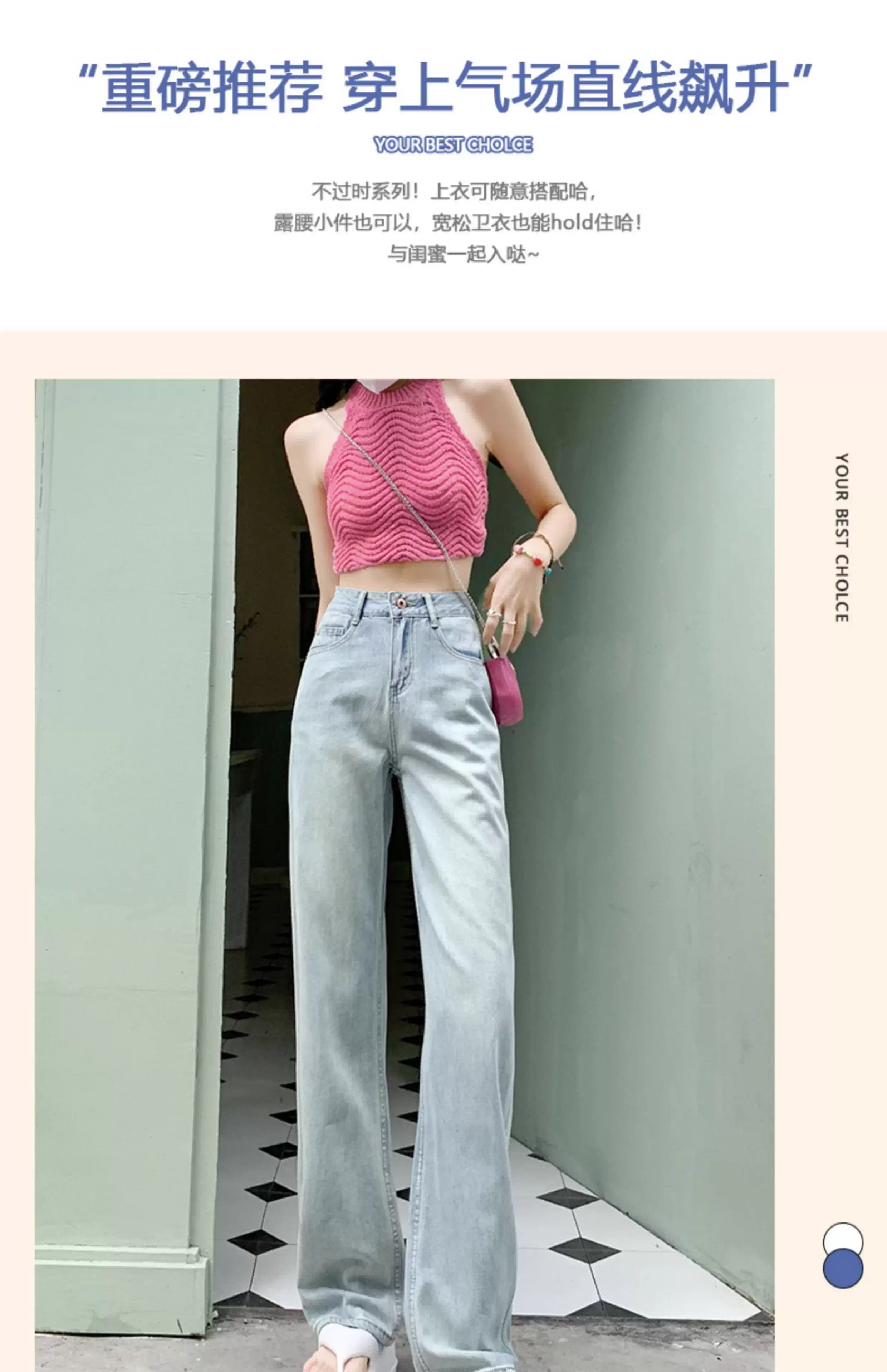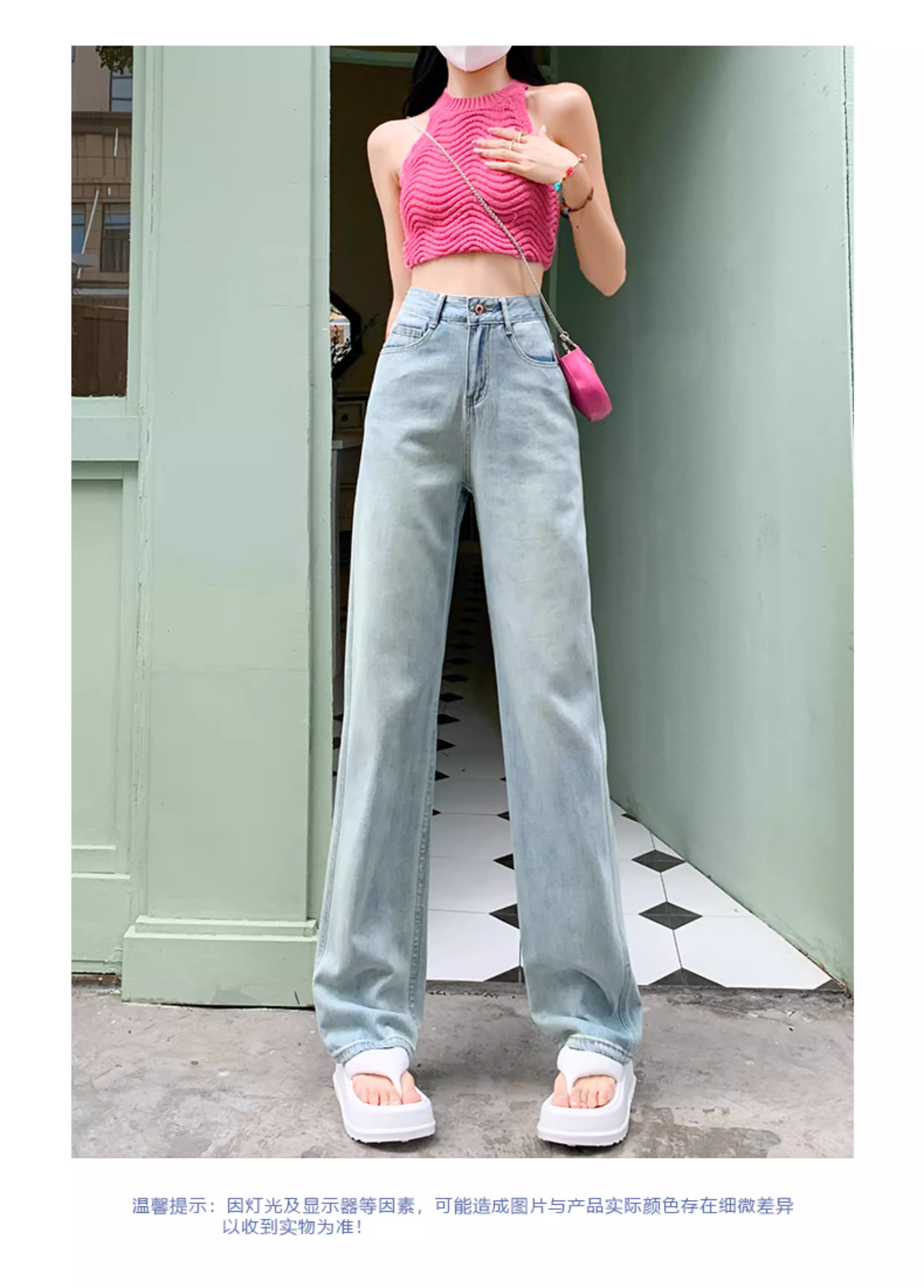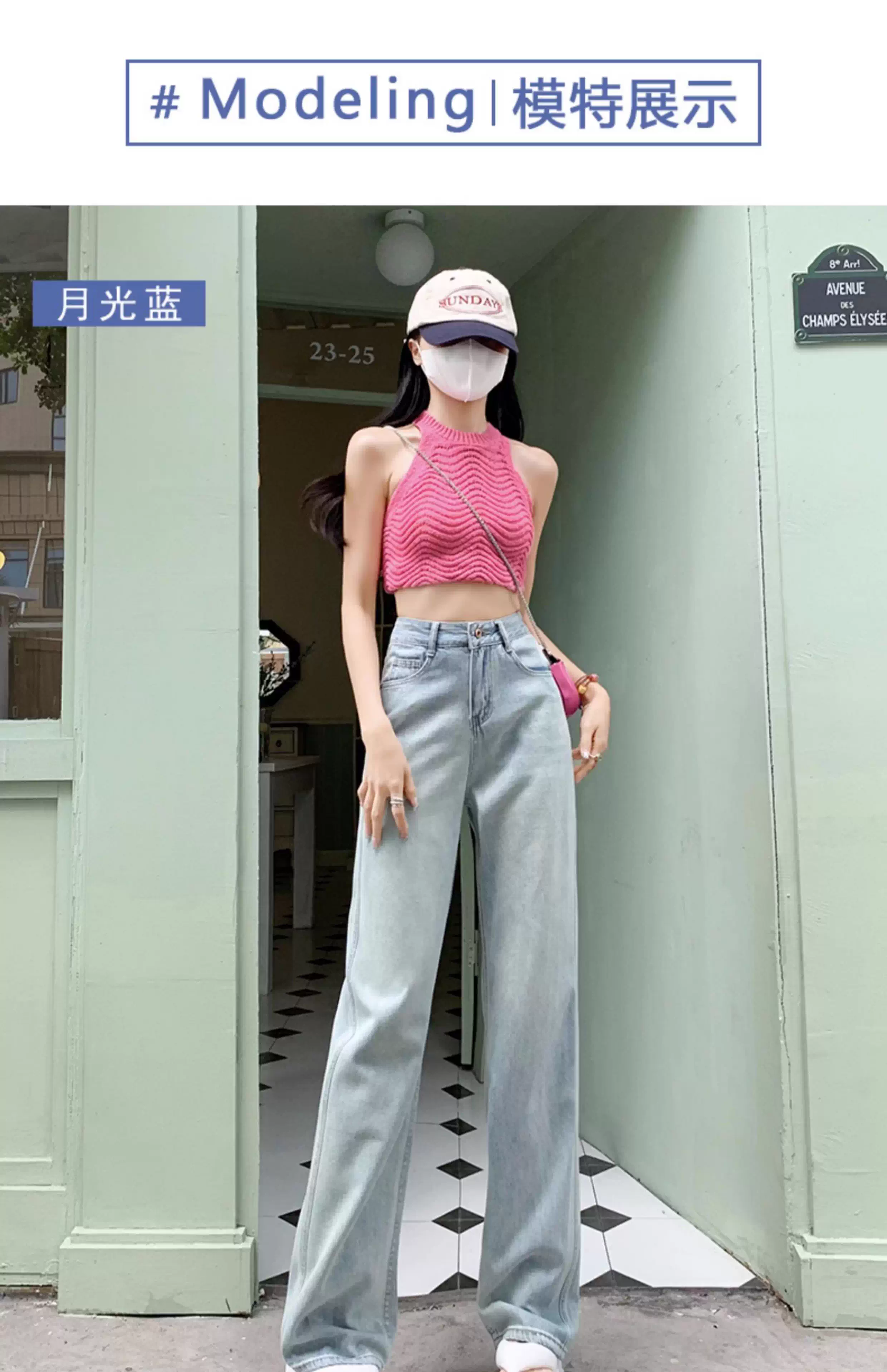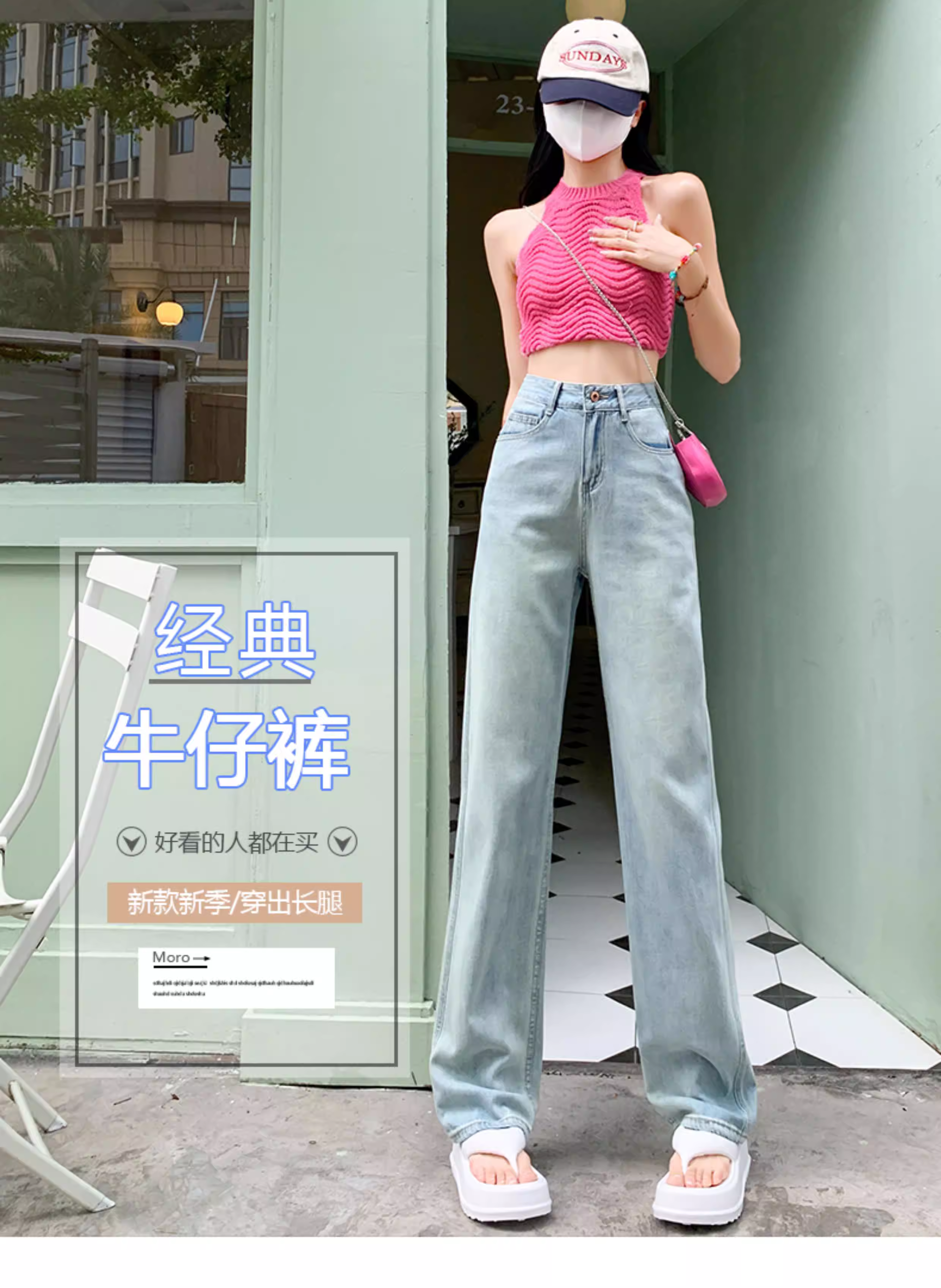 Quần jeans ống rộng màu sáng La Chapelle dành cho nữ, mẫu mới hè 2025, cạp cao, dáng thẳng, tôn dáng cho người nhỏ nhắn.