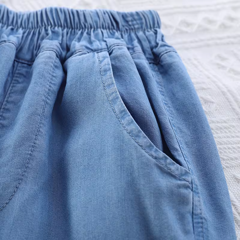- Quần jeans Tencel trẻ em hè 2025 kiểu mới bé trai bé gái quần dài rộng rãi mỏng chống muỗi thời trang