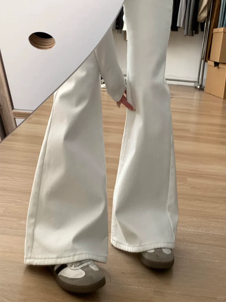- Quần jeans trắng dáng loe nữ, kiểu mới thu 2025, size lớn, cạp cao, co giãn, che hông, tôn dáng, quần ống chuông