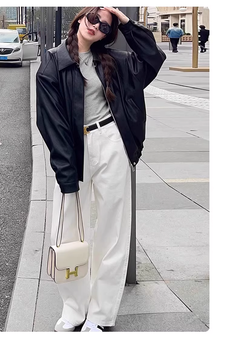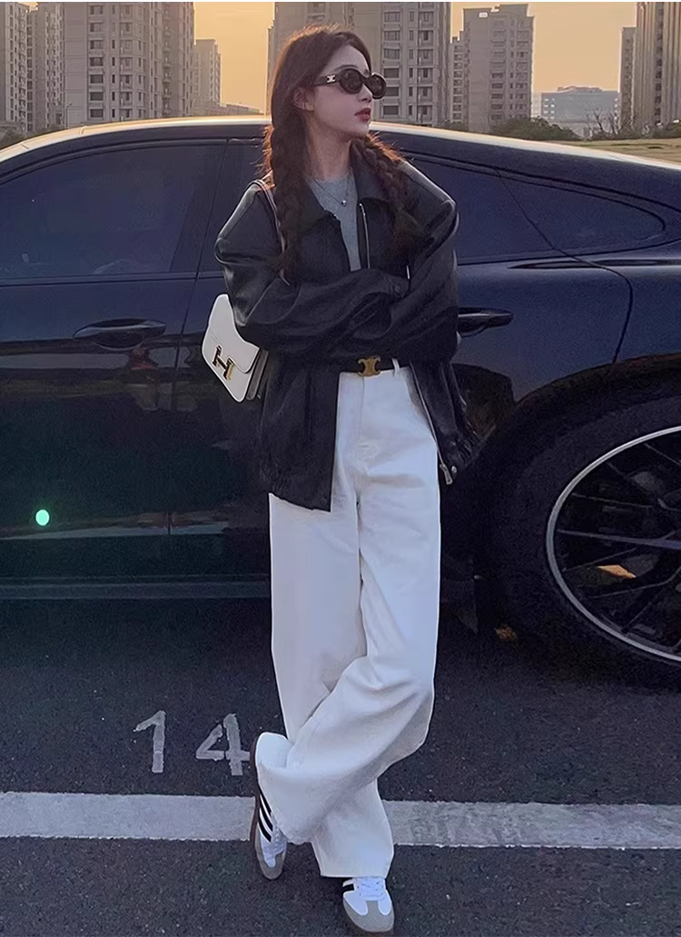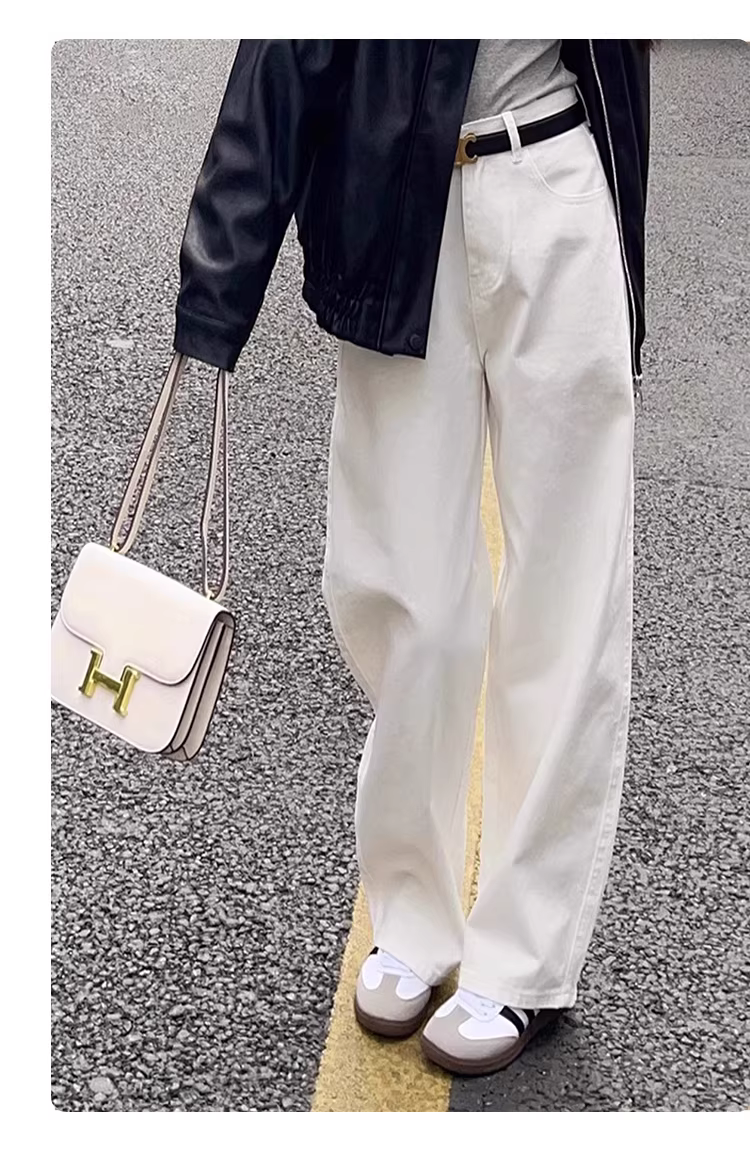 - Quần jeans trắng dáng rộng La Chapelle dành cho nữ, mẫu mới thu đông 2025, cạp cao, dáng suông, dành cho người nhỏ nhắn