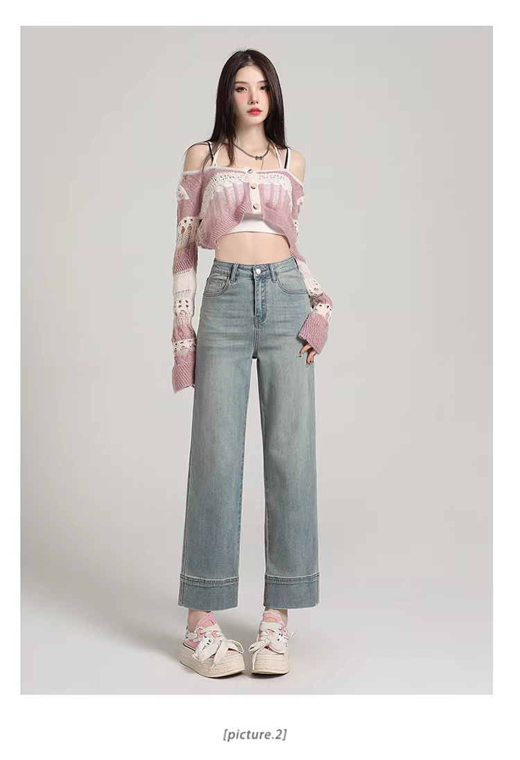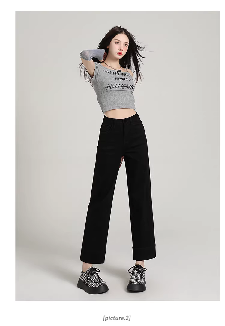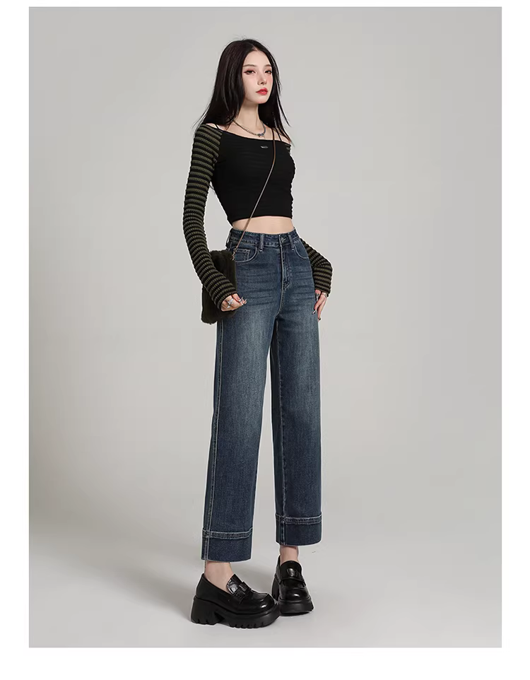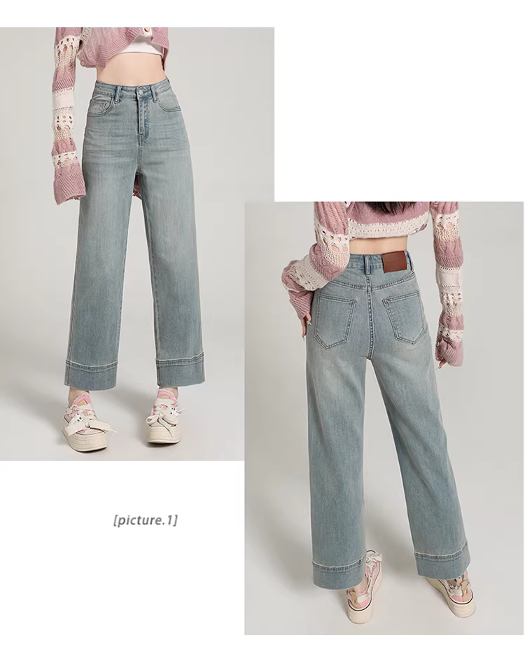 Quần jeans trắng La Chapelle ống rộng, cạp cao, dáng ôm, kiểu dáng thẳng, dành cho nữ, mẫu mới thu đông 2025