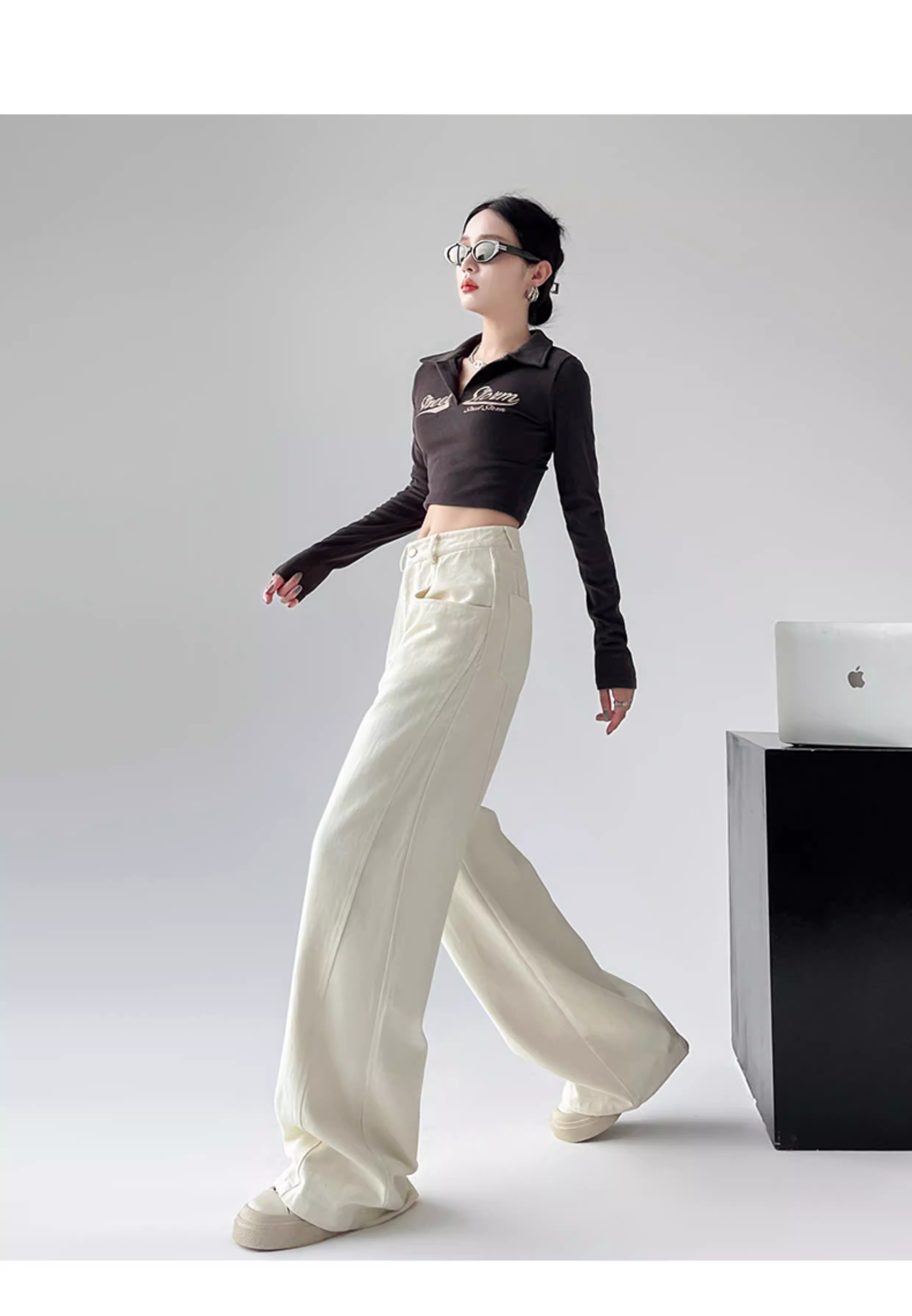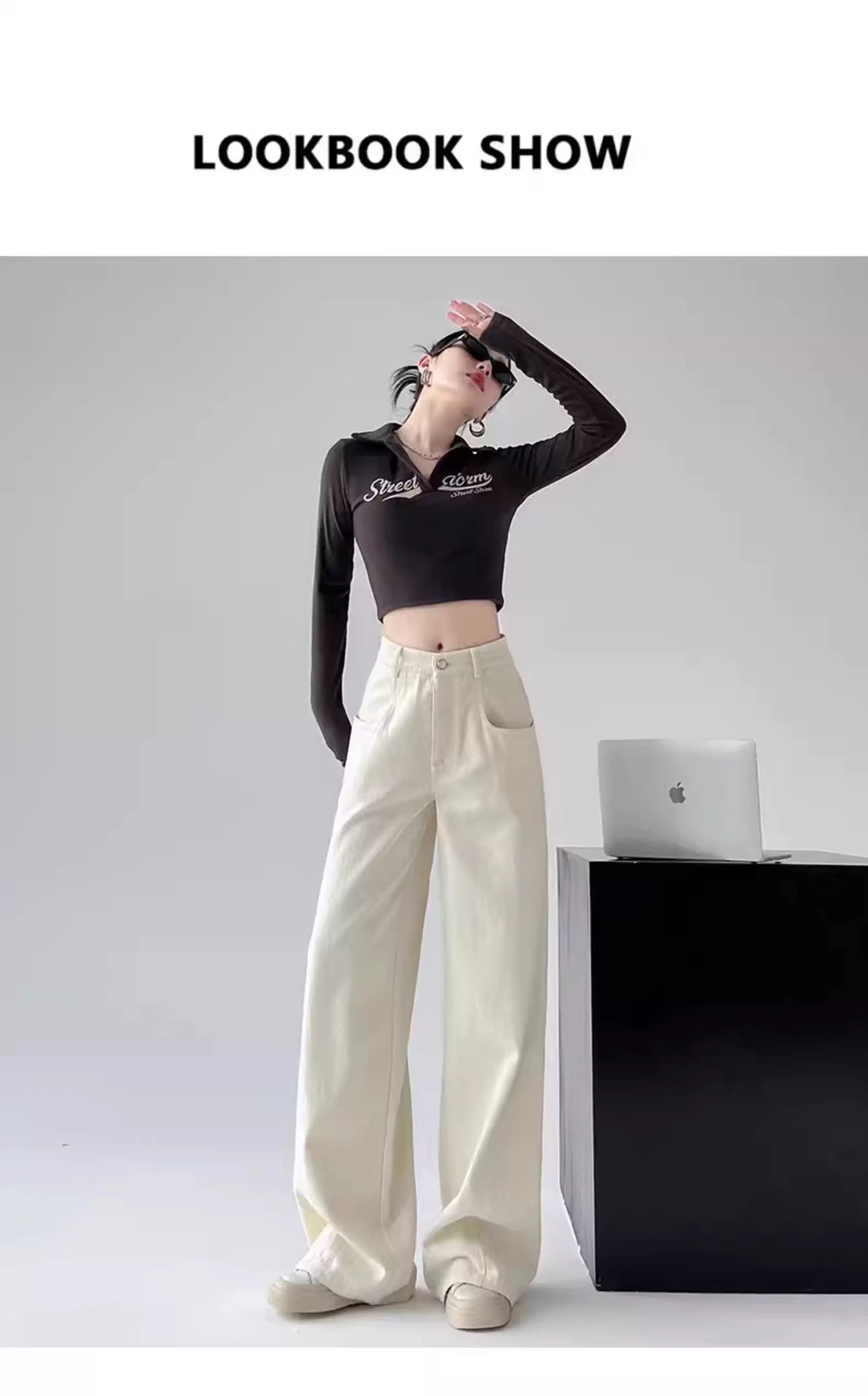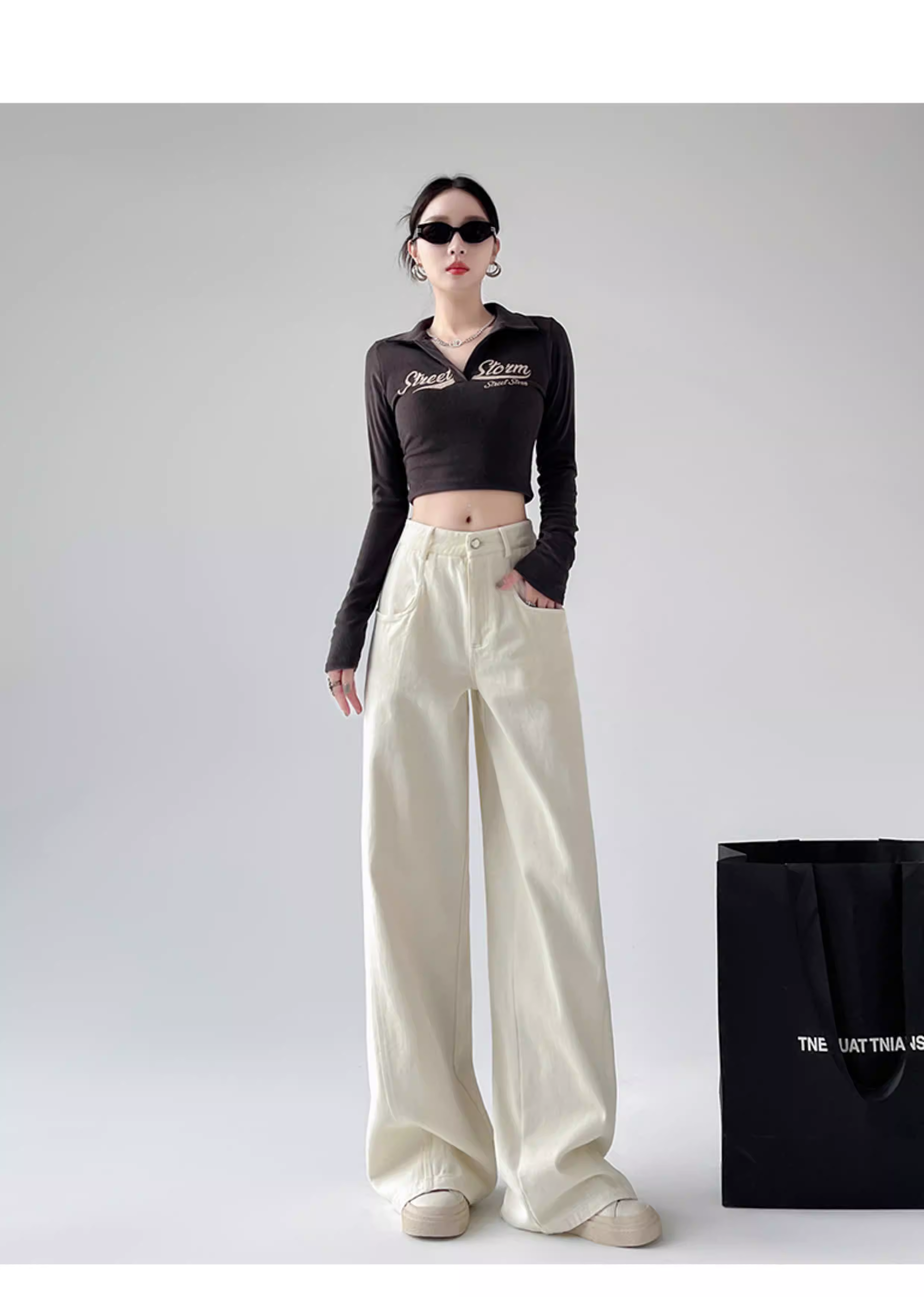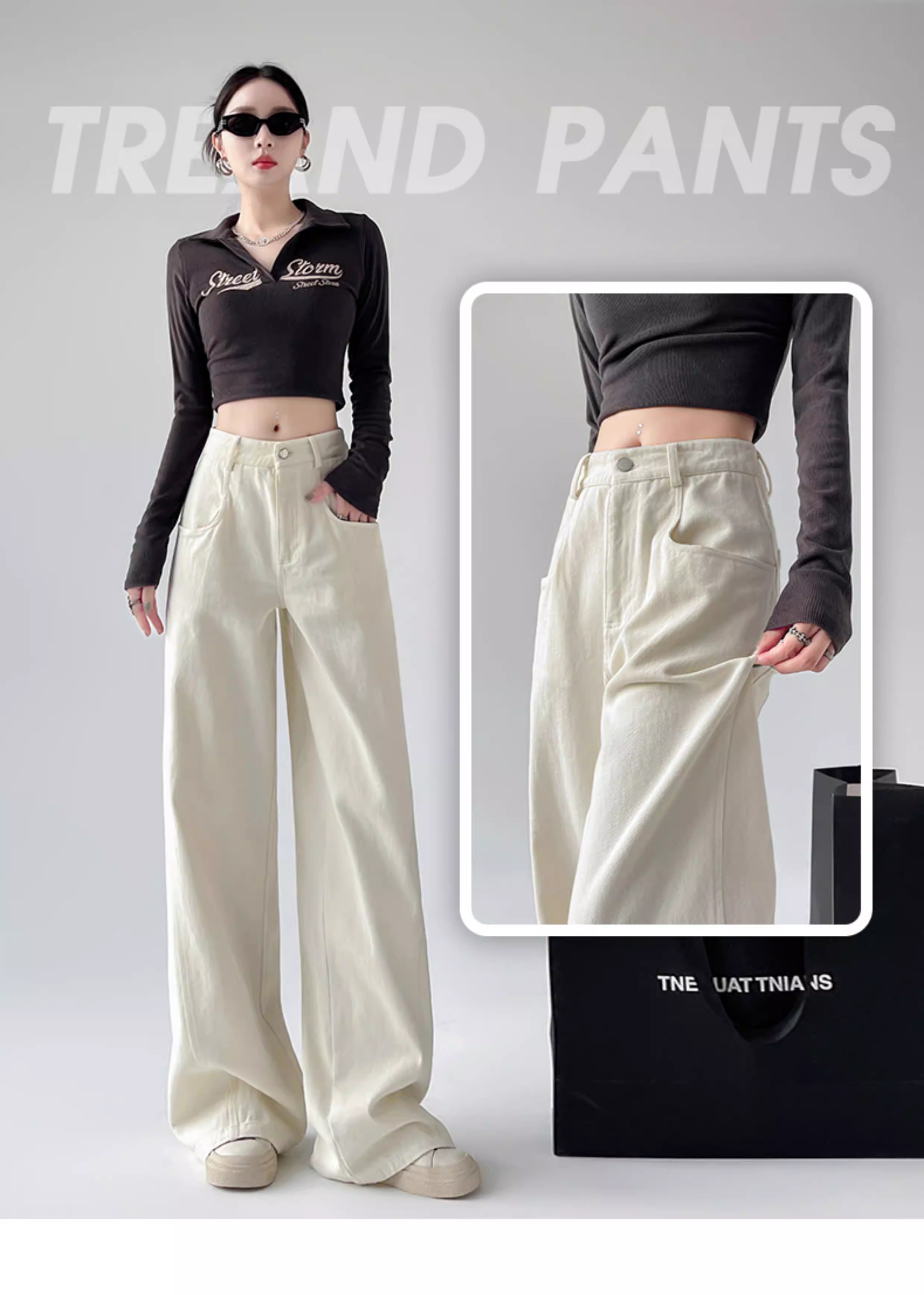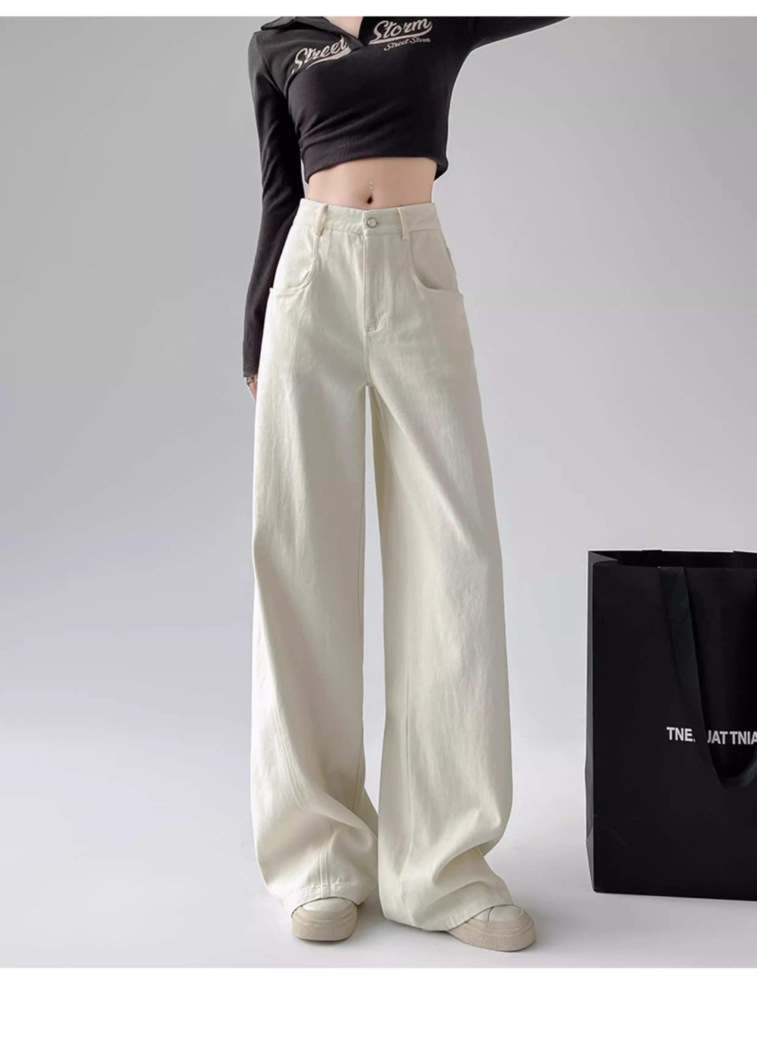 Quần jeans trắng La Chapelle ống rộng dành cho nữ, kiểu mới thu đông 2025, cạp cao, dáng rộng, nhỏ nhắn, quần ống đứng suôn mềm.