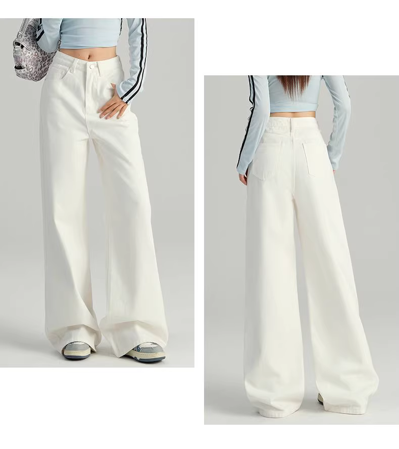 - Quần jeans trắng La Chapelle ống rộng dành cho nữ, mẫu mới thu 2025, dáng nhỏ nhắn, cạp cao, rộng rãi, dài chấm đất, kiểu thẳng