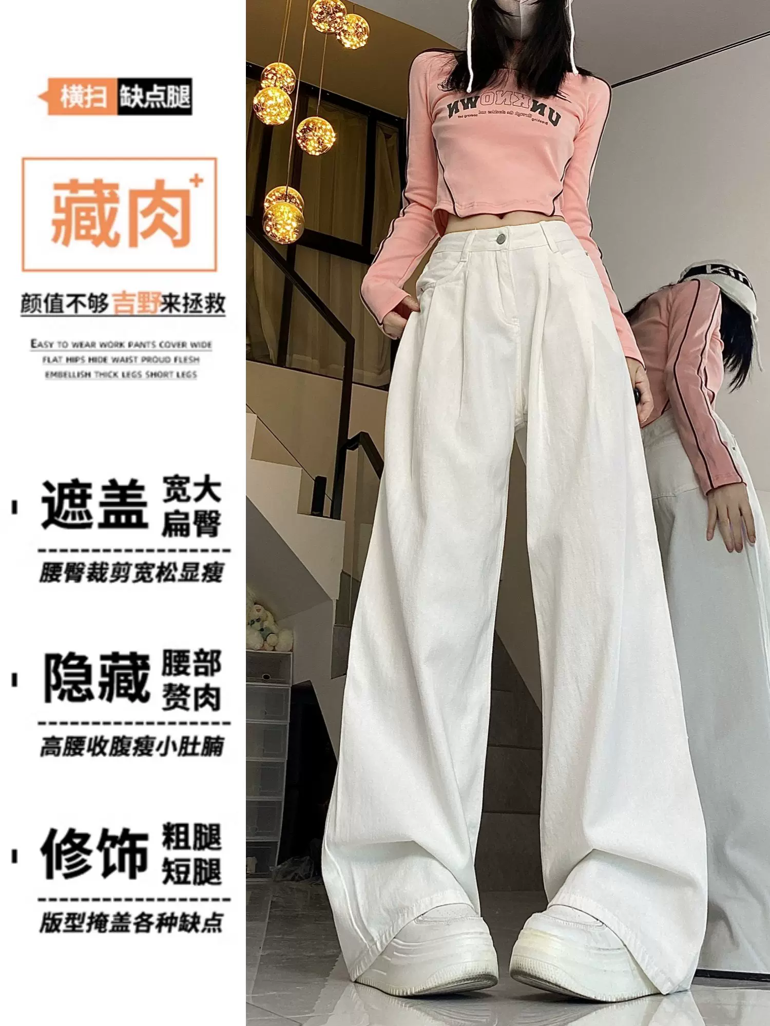 Quần jeans trắng ống đứng nữ, kiểu thu đông 2025, size lớn, cạp cao, dáng rộng, suôn mềm, tôn dáng, ống rộng, dài chạm sàn.