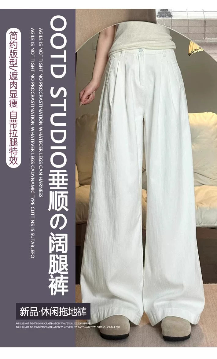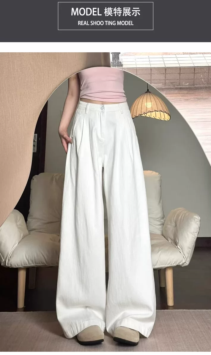 Quần jeans trắng ống rộng nữ, hè 2025, size lớn, cạp cao, dáng rộng, mềm mại, tôn dáng, dành cho người dáng quả lê, ống thẳng, dài chạm sàn