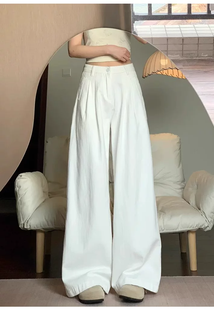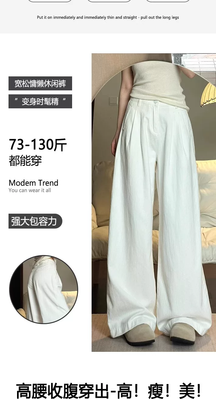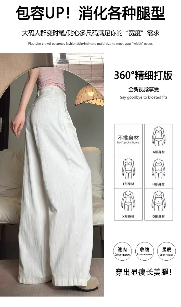 - Quần jeans trắng ống rộng nữ, hè 2025, size lớn, cạp cao, dáng rộng, mềm mại, tôn dáng, dành cho người dáng quả lê, ống thẳng, dài chạm sàn