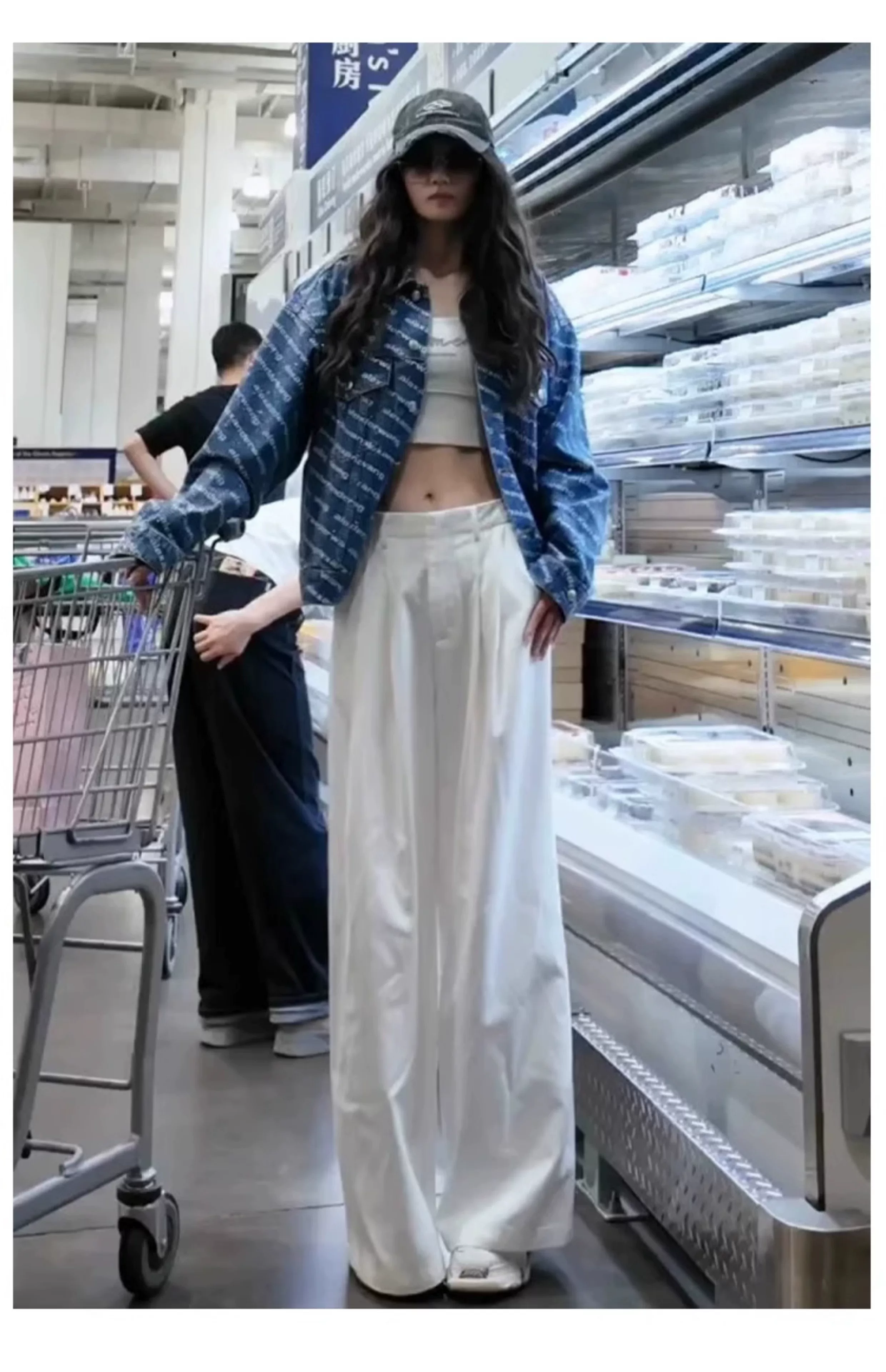 Quần jeans trắng ống rộng nữ, size lớn mùa hè, đầu thu 2025, cạp cao, dáng rộng, suôn mềm, tôn dáng, quần ống đứng.