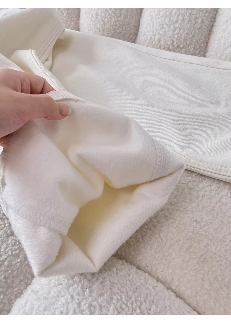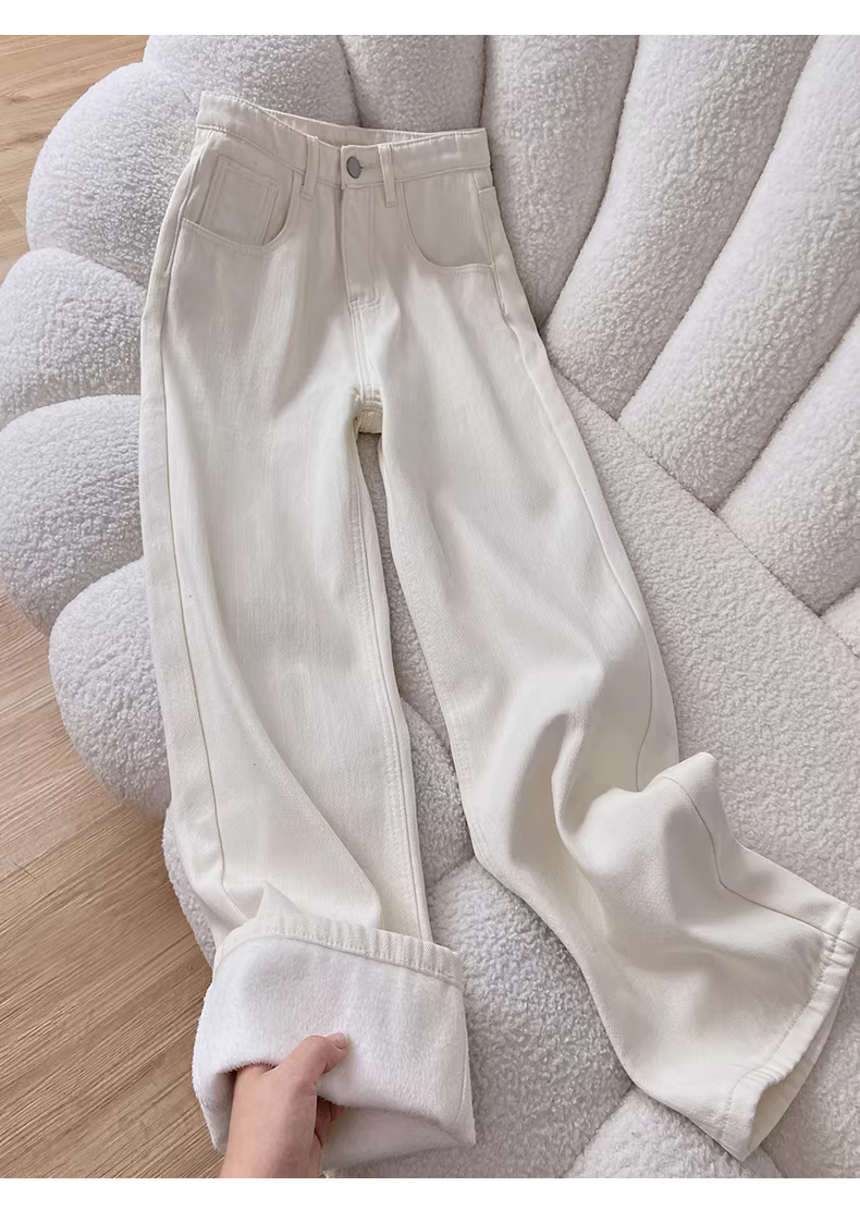 Quần jeans trắng rộng ống La Chapelle dành cho nữ, kiểu mới thu đông 2025, lót lông, dáng thẳng nhỏ nhắn.