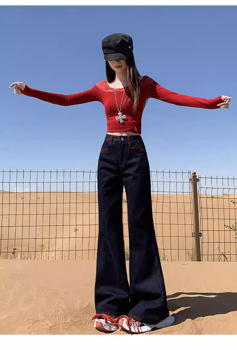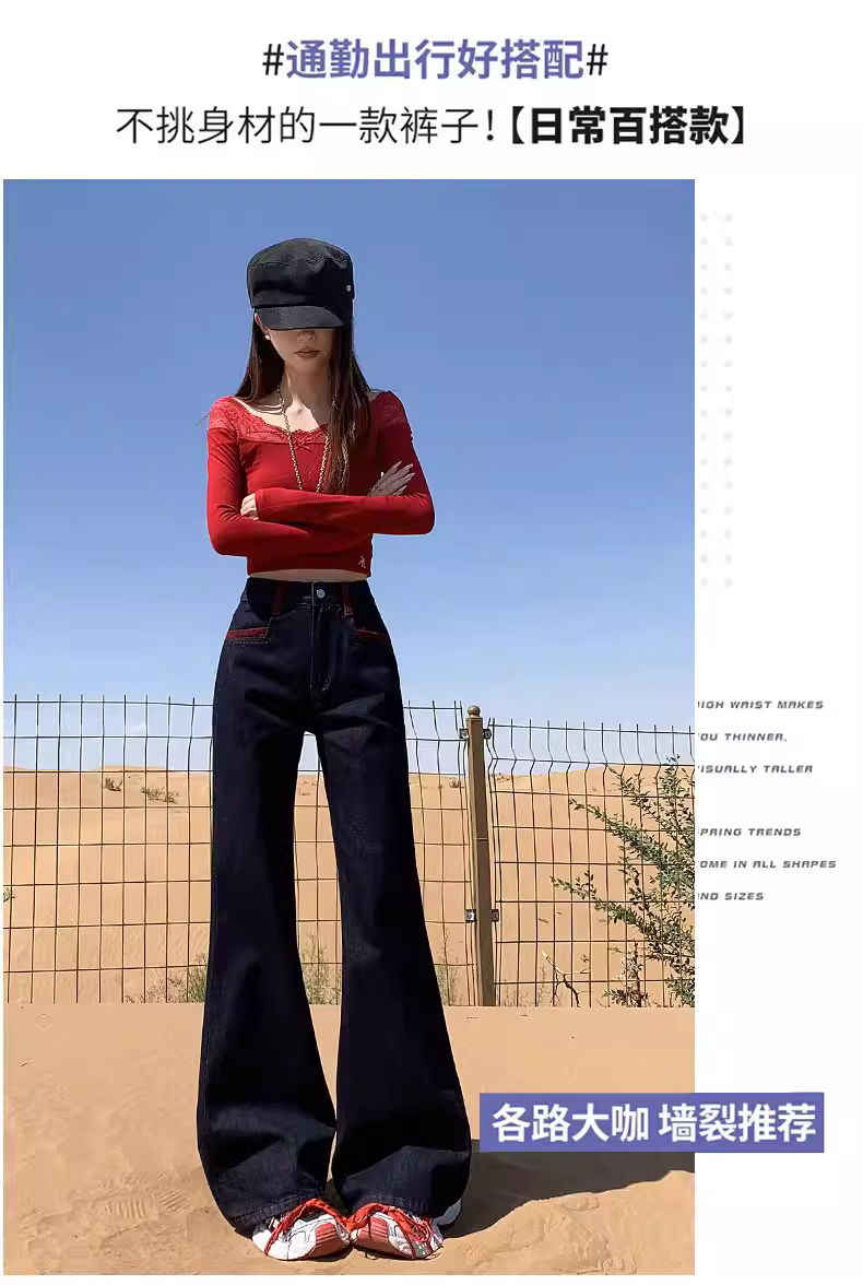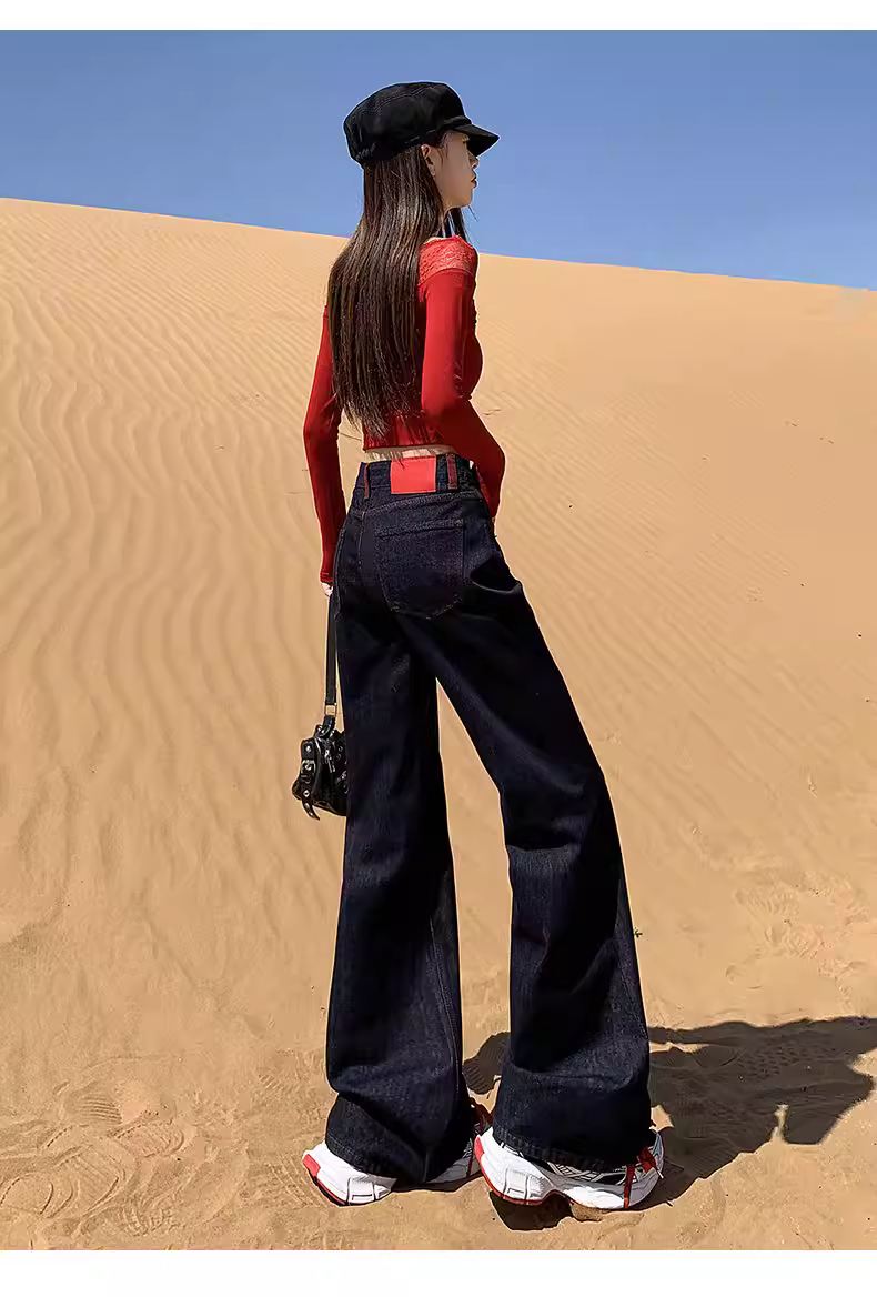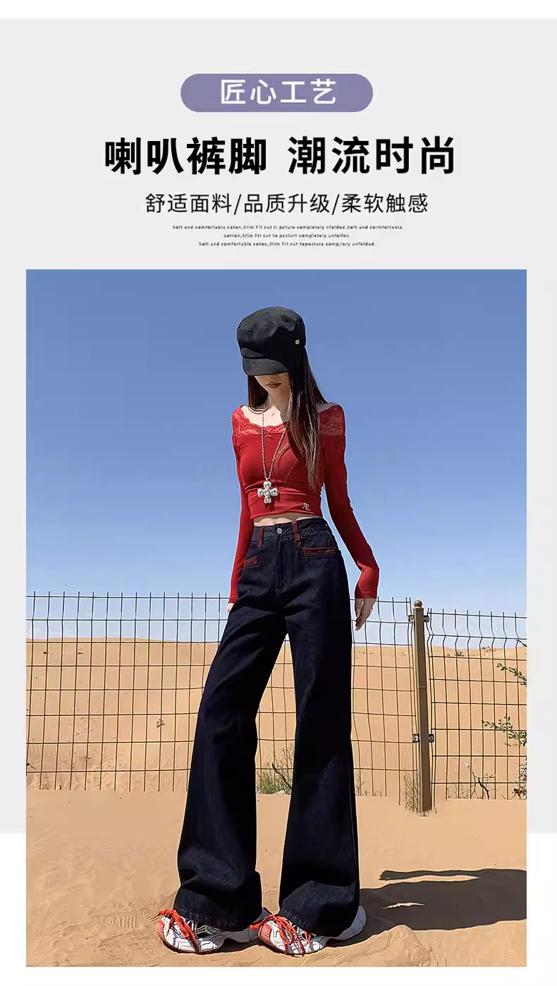 - Quần jeans xanh đậm dáng loe La Chapelle dành cho nữ, mẫu mới thu đông 2025, cạp cao, ôm dáng, không bó sát.