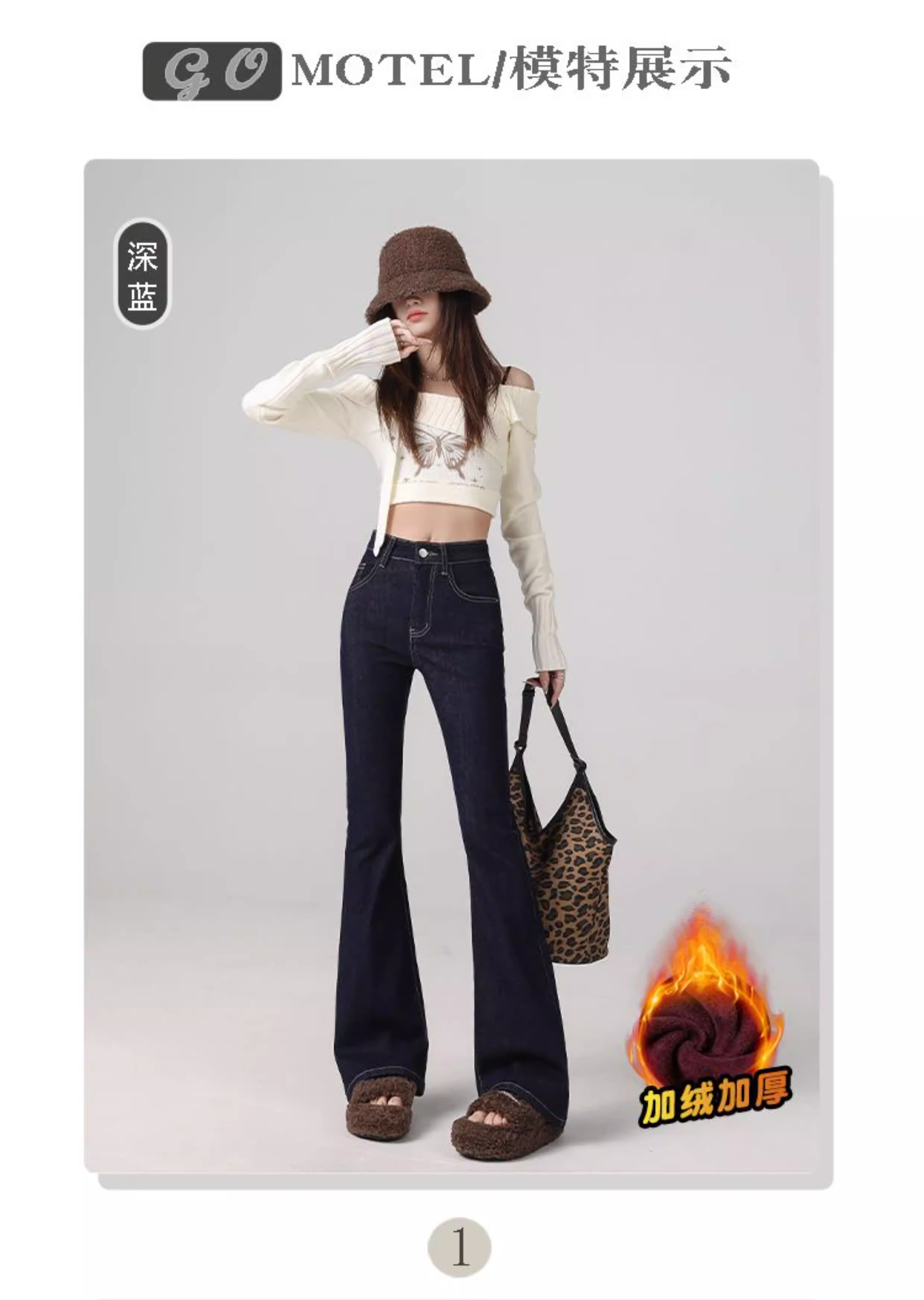 Quần jeans xanh đậm dáng loe La Chapelle dành cho nữ, mẫu mới thu đông 2025, cạp cao, ôm dáng, lót lông, kiểu chuông