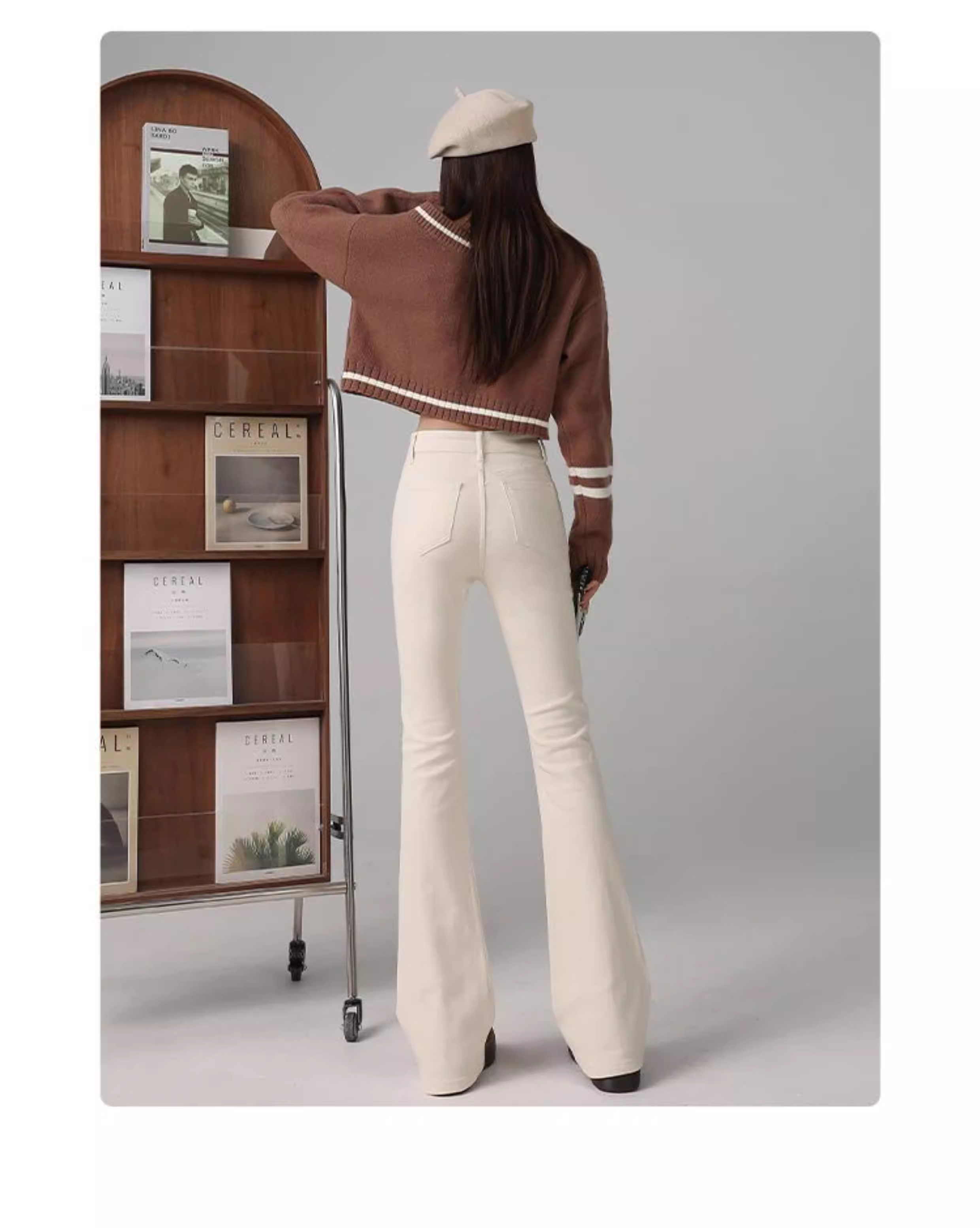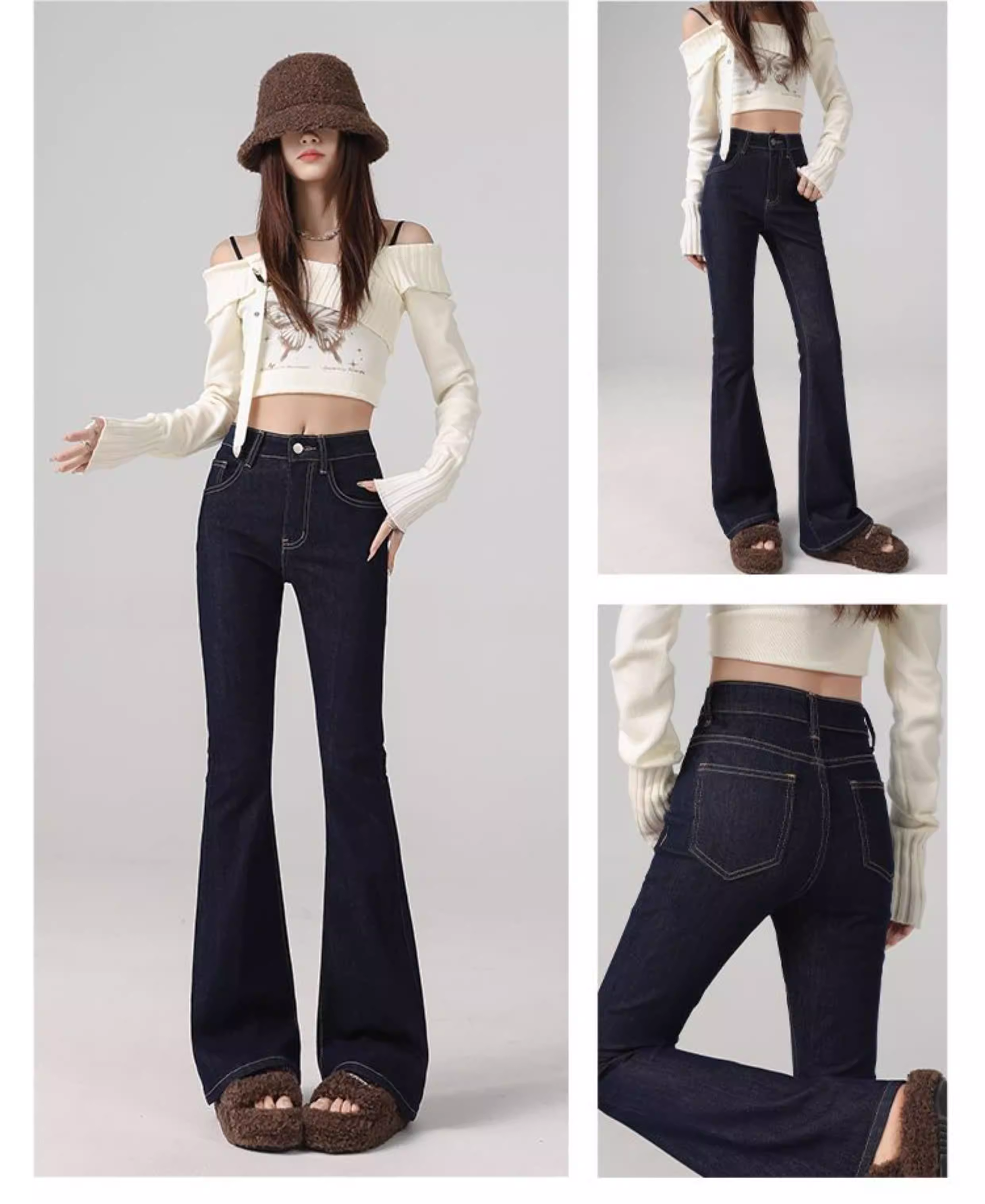 - Quần jeans xanh đậm dáng loe La Chapelle dành cho nữ, mẫu mới thu đông 2025, cạp cao, ôm dáng, lót lông, kiểu chuông