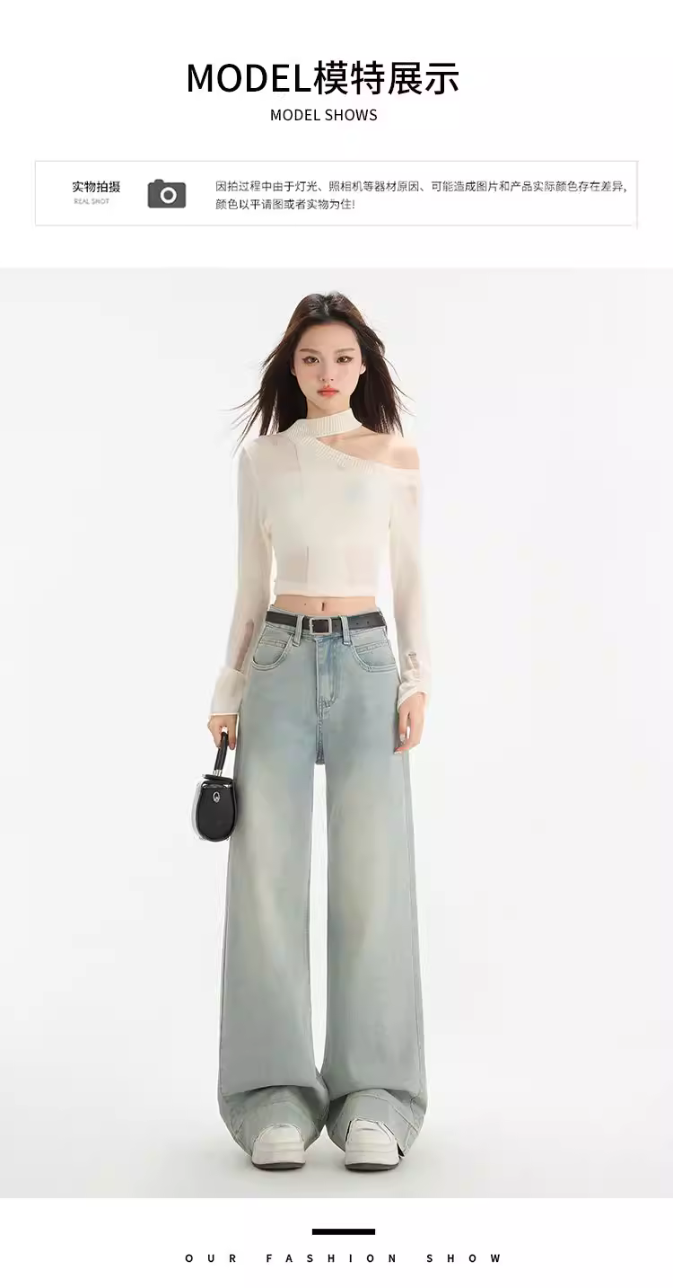 Quần jeans xanh denim dáng loe La Chapelle dành cho nữ, mẫu mới thu đông 2025, cạp cao, lót lông, dáng thẳng, size nhỏ