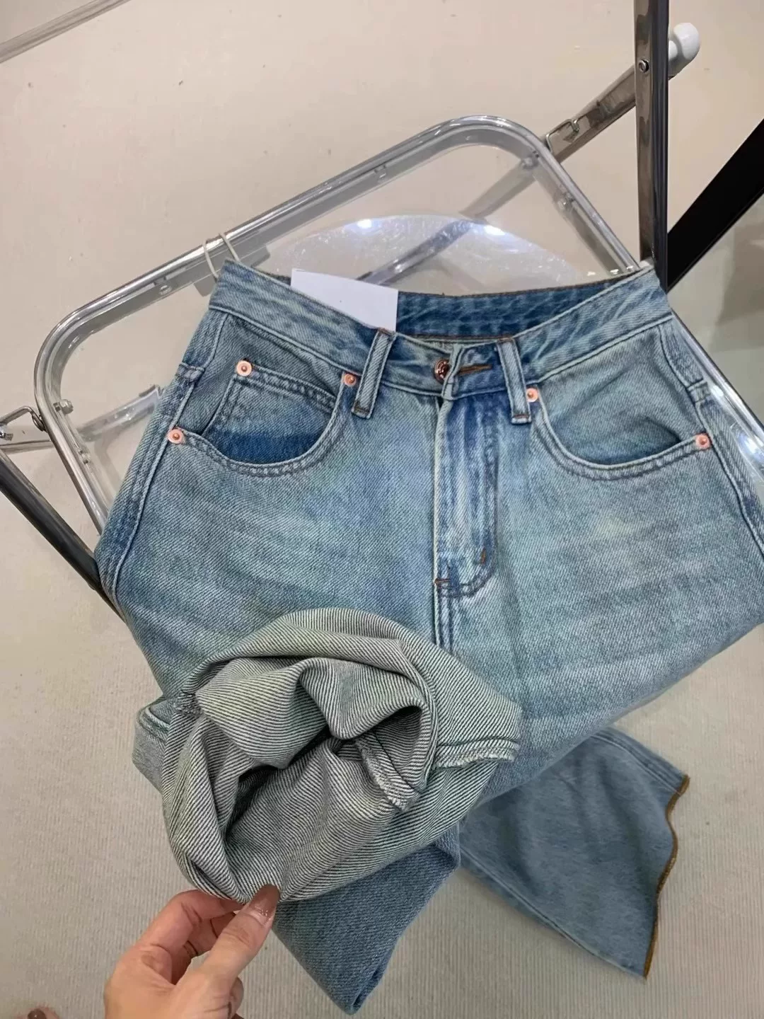 - Quần jeans xanh nhạt dáng loe nữ thu đông 2024 kiểu mới, size lớn, cạp cao, che hông, tôn dáng, ống rộng, dáng chuông, dài