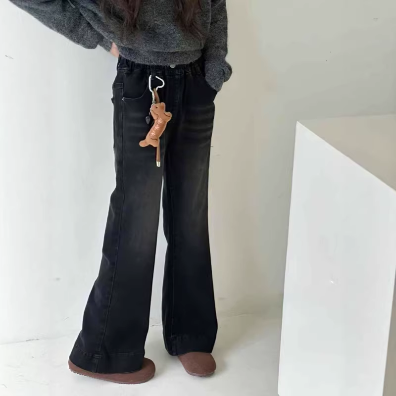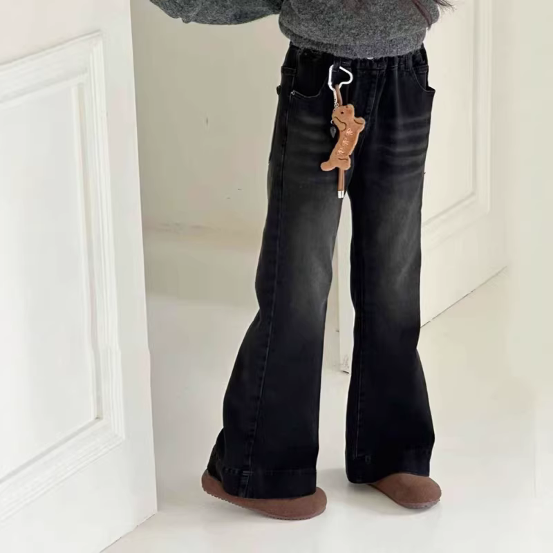 - Quần jeans xòe mùa thu 2025 cho bé gái, kiểu dáng đa năng, rộng rãi, hơi xòe, chất liệu thoải mái, tôn dáng