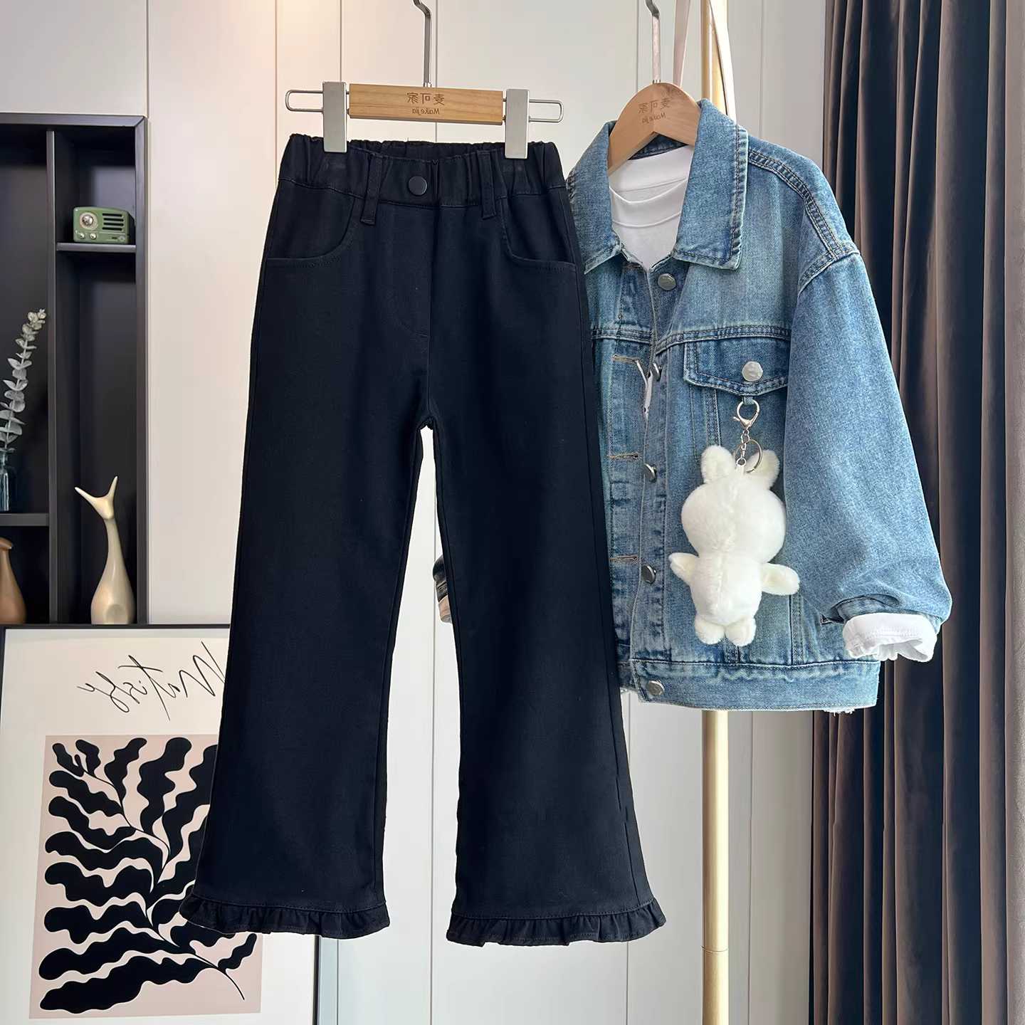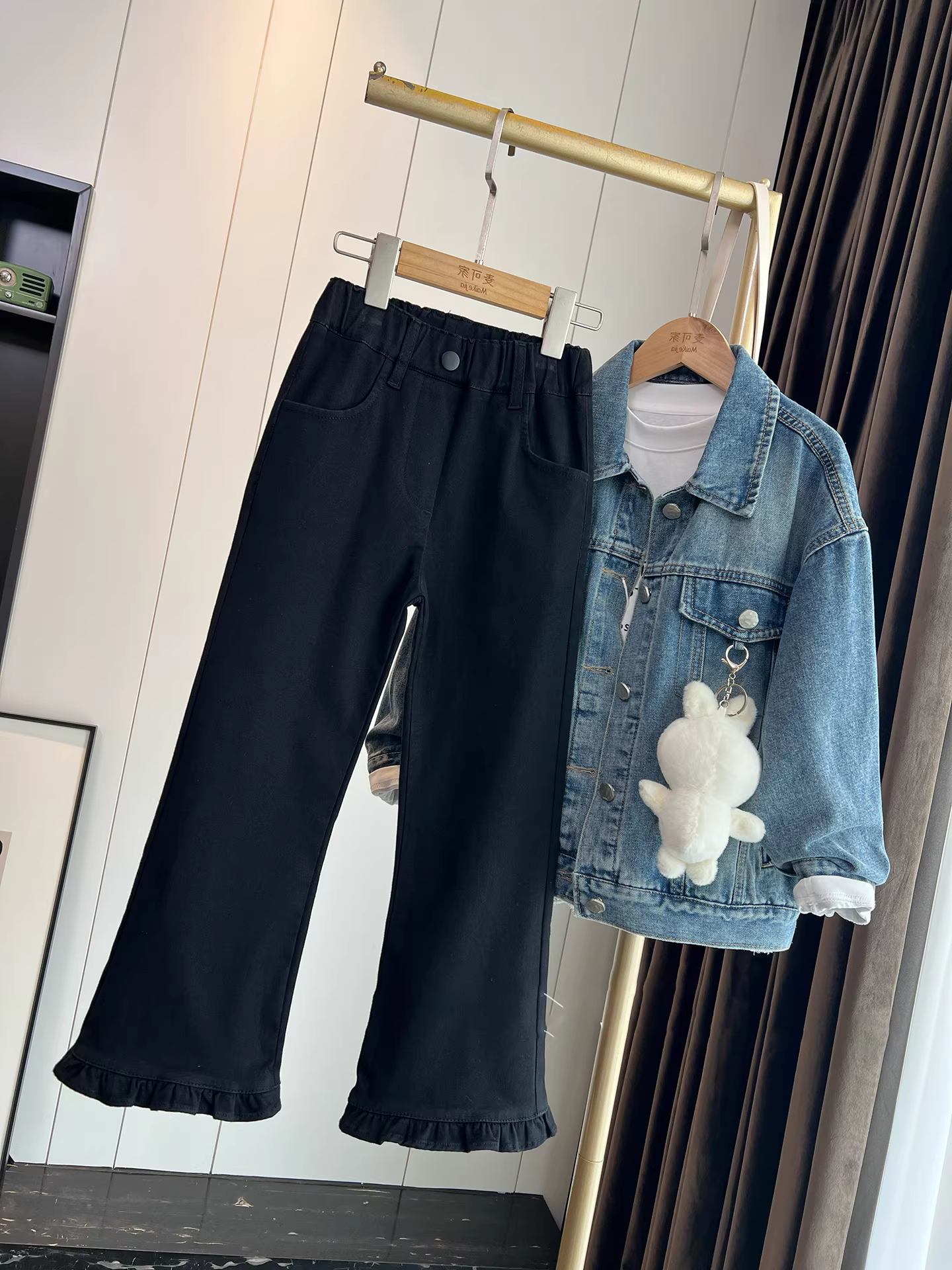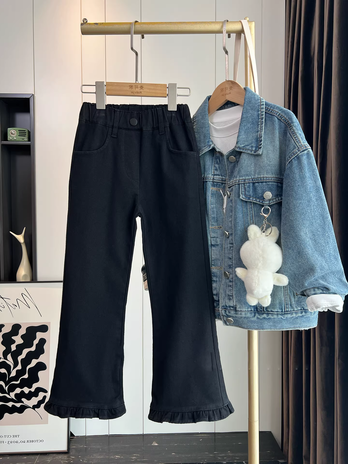 - Quần jeans xòe xếp ly kiểu Hàn Quốc thu đông 2025 dành cho bé gái lớn, quần dài mặc thường ngày