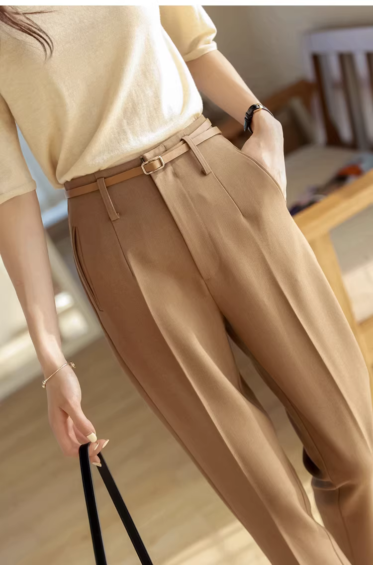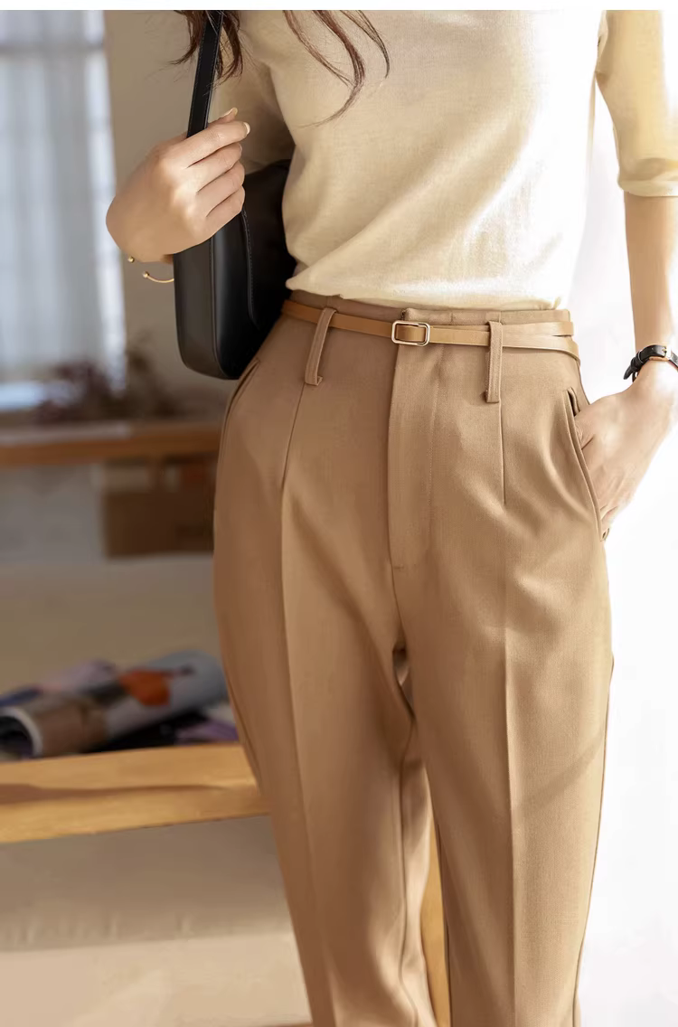 Quần kaki cao cấp, cạp cao, dáng ôm, phong cách thường ngày dành cho nữ, quần harem rộng rãi, tạo hiệu ứng xếp ly, kiểu quần ống đứng.