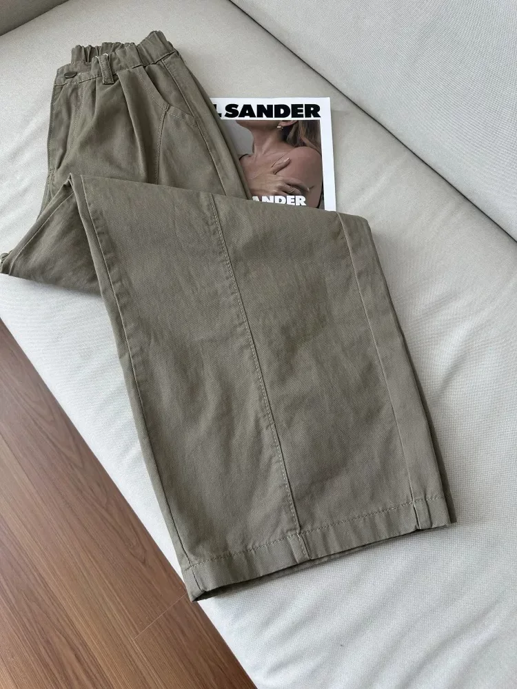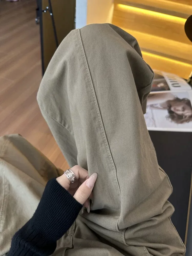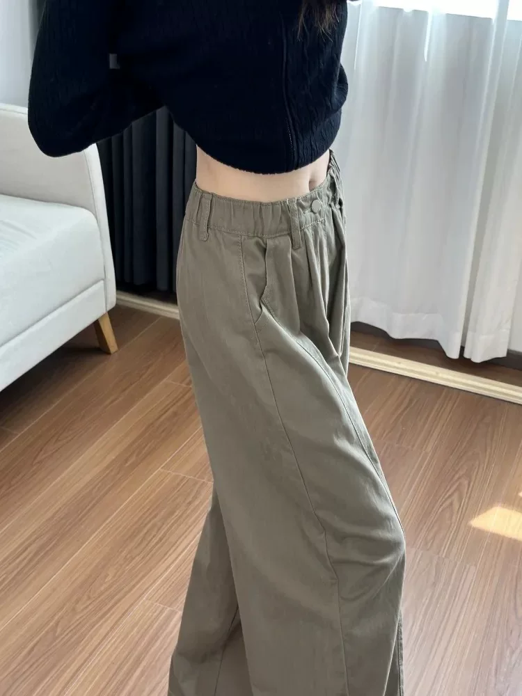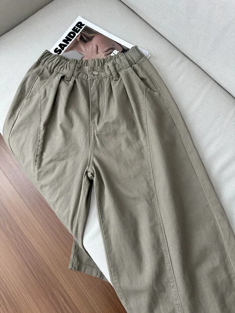 Quần kaki cargo kiểu Mỹ dành cho nữ, mùa thu, cỡ lớn, lưng cao, dáng rộng, tôn dáng, quần ống rộng kiểu scimitar