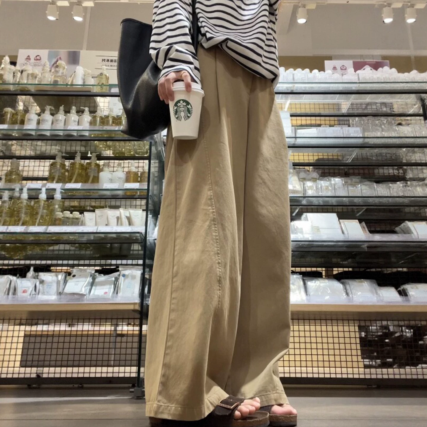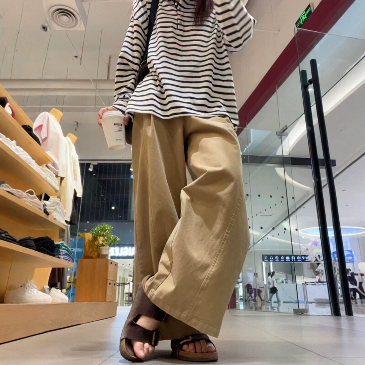 - Quần kaki vintage kiểu công sở dành cho nữ, mùa thu, size lớn, cạp cao, dáng rộng, chất liệu mềm mại, ống thẳng, ống rộng, dài chạm sàn.