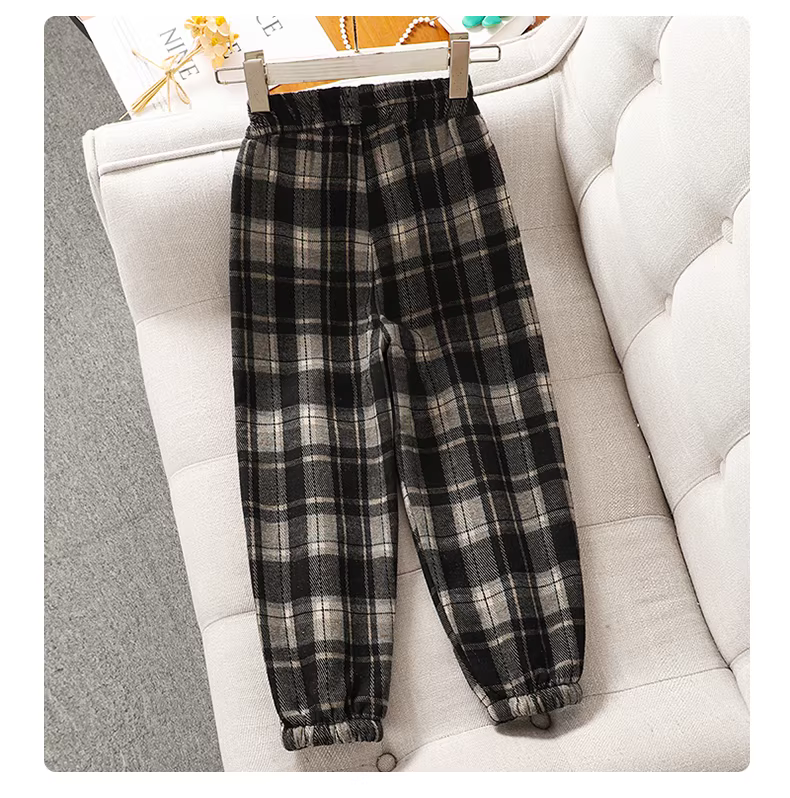 - Quần kẻ sọc lót lông cừu cho bé gái mùa thu đông 2025, quần jogger dày dặn mới dành cho trẻ lớn, quần giữ ấm mùa đông cho trẻ em