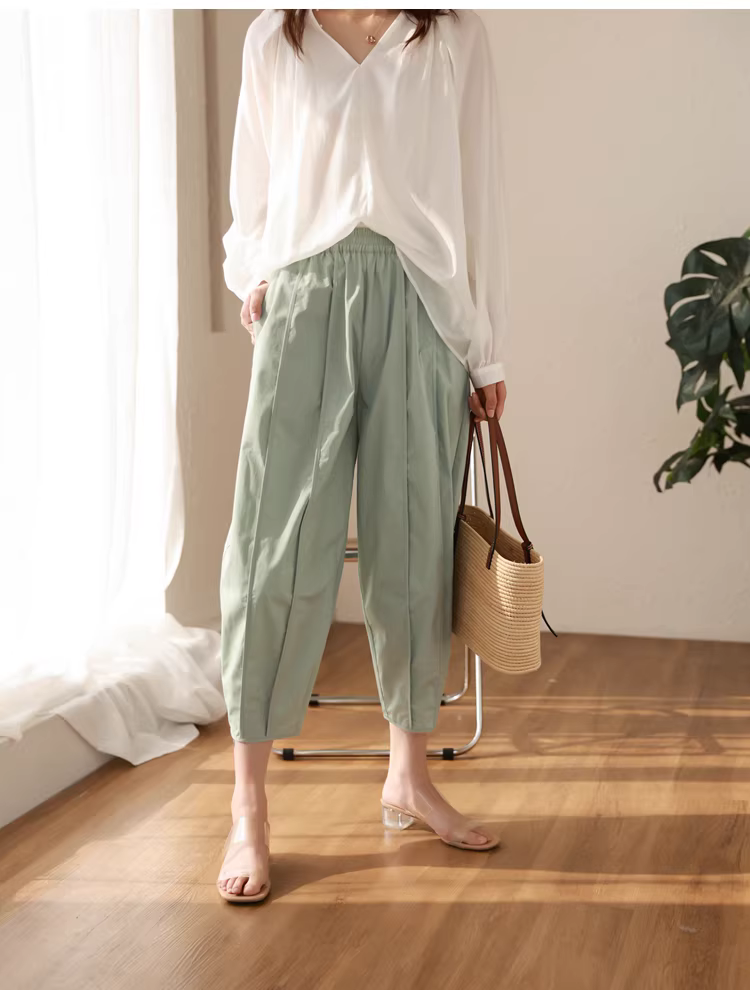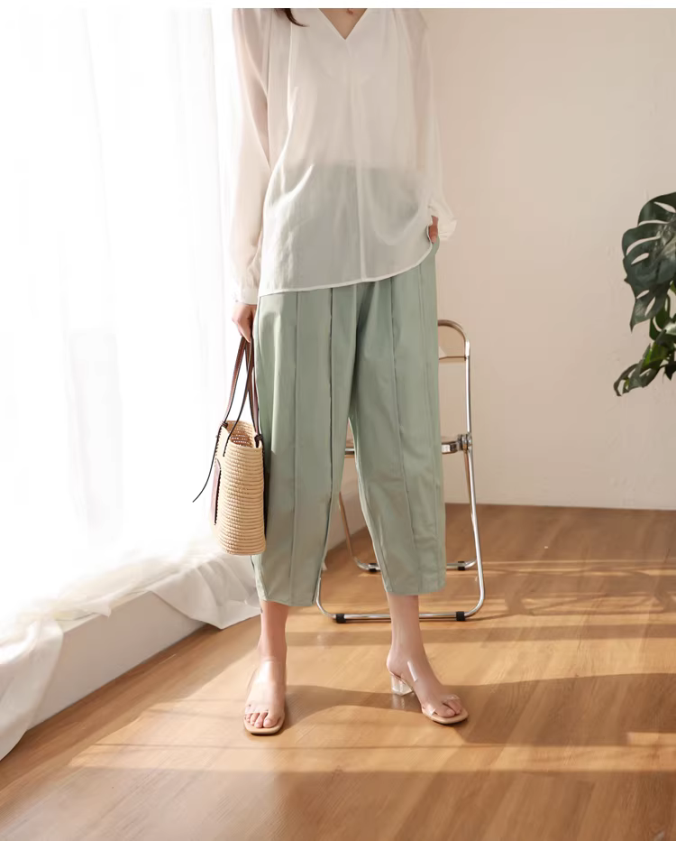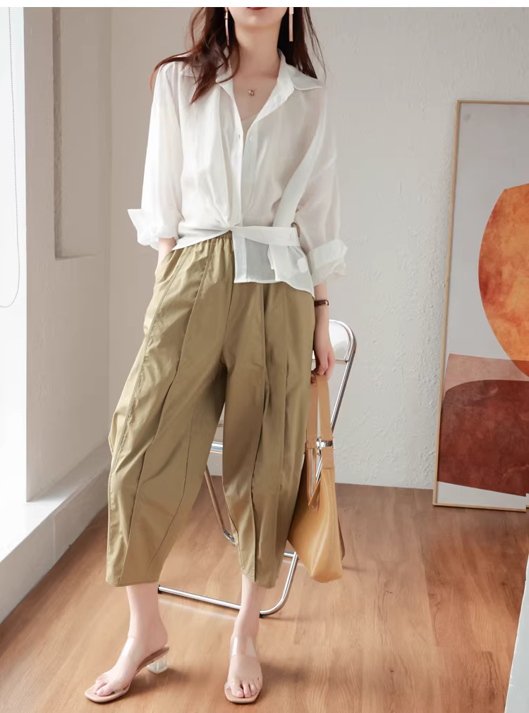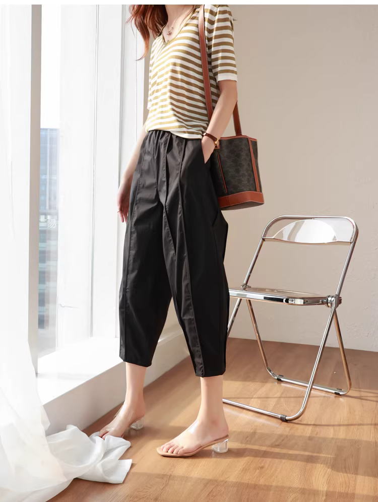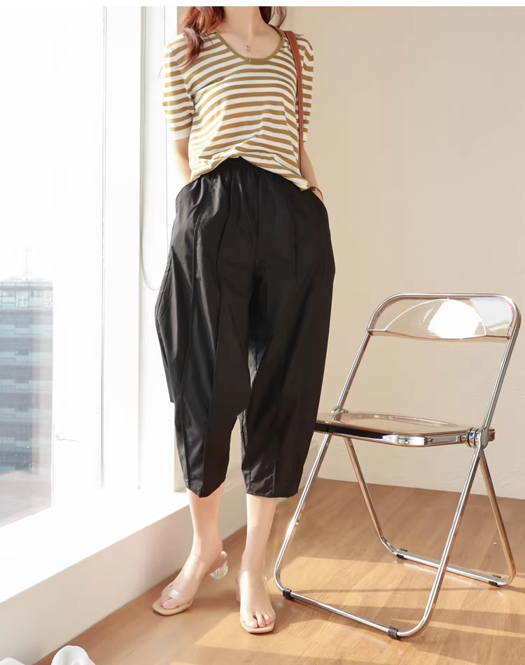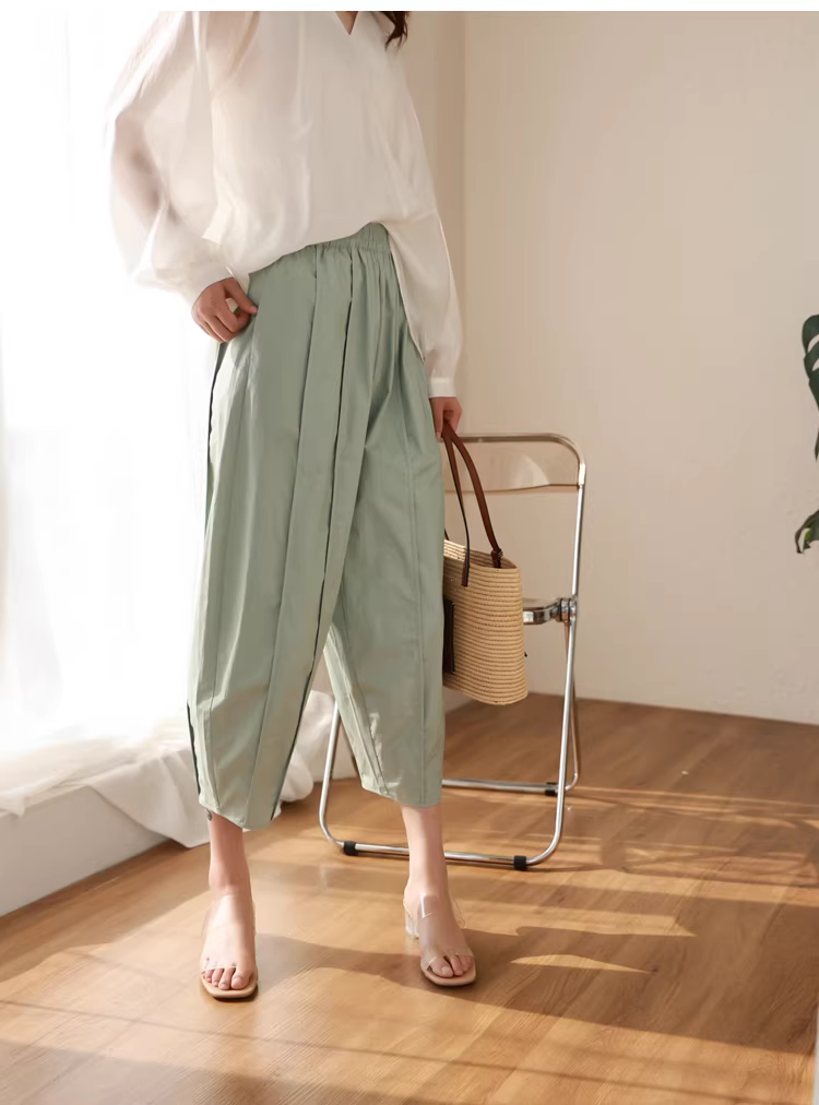 - Quần kiểu dáng thiết kế độc đáo, cắt may ba chiều, lưng thun, dáng rộng, che khuyết điểm, quần thường ngày dành cho nữ, mới cho mùa hè.