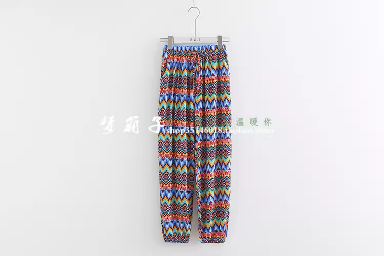 Quần Lantern in họa tiết sóng tươi mới phong cách mùa hè Dream Box 2024, lưng thun, kiểu dáng dân tộc, quần đi biển, quần thường ngày