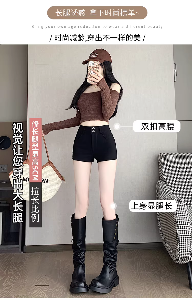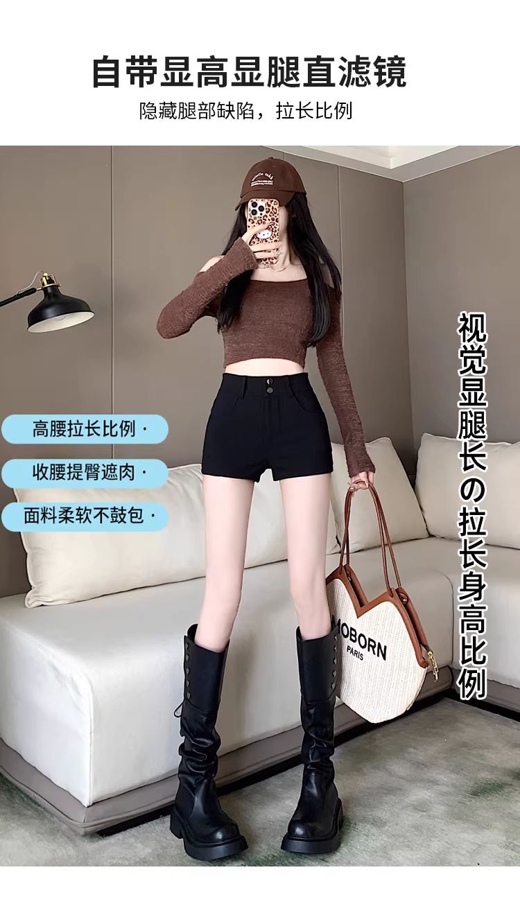 Quần legging, quần short bó sát, quần short kiểu boot cao eo màu đen dành cho nữ mùa xuân thu 2025.