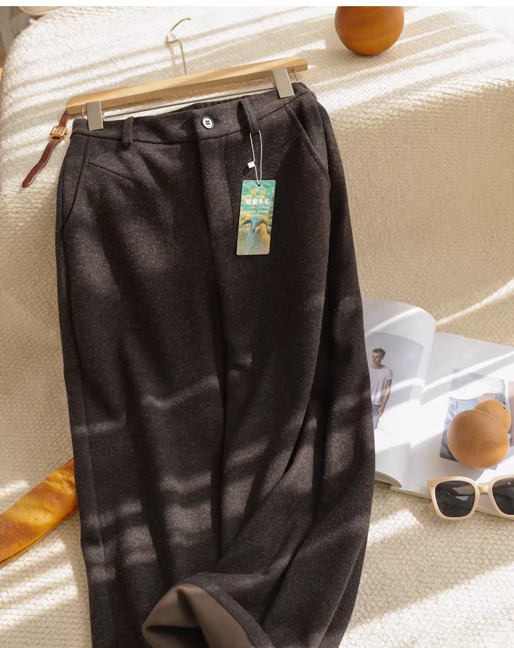 秋冬醋酸羊毛直筒毛呢裤
